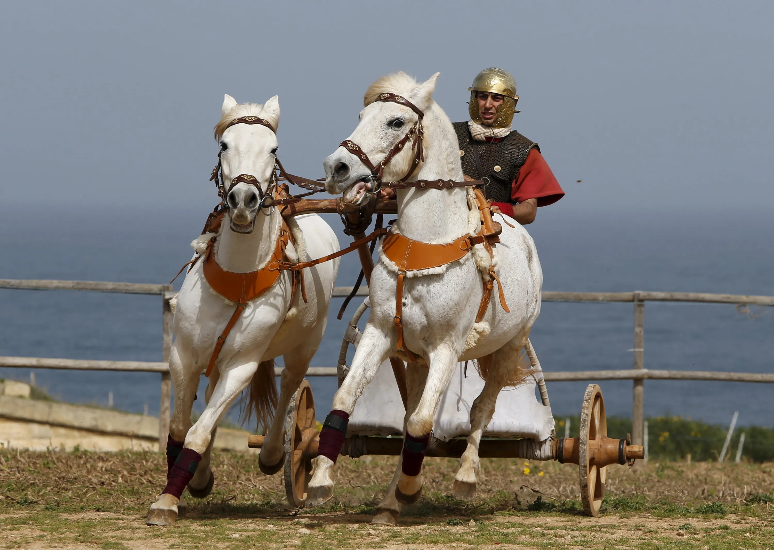 A member of the Fort Rinella Horse Troop of the Malta Heritage Trust rides a chariot during a display of ancient Roman army life at Fort Rinella in Kalkara, outside Valletta, March 22, 2015. (Photo by Darrin Zammit Lupi/Reuters)