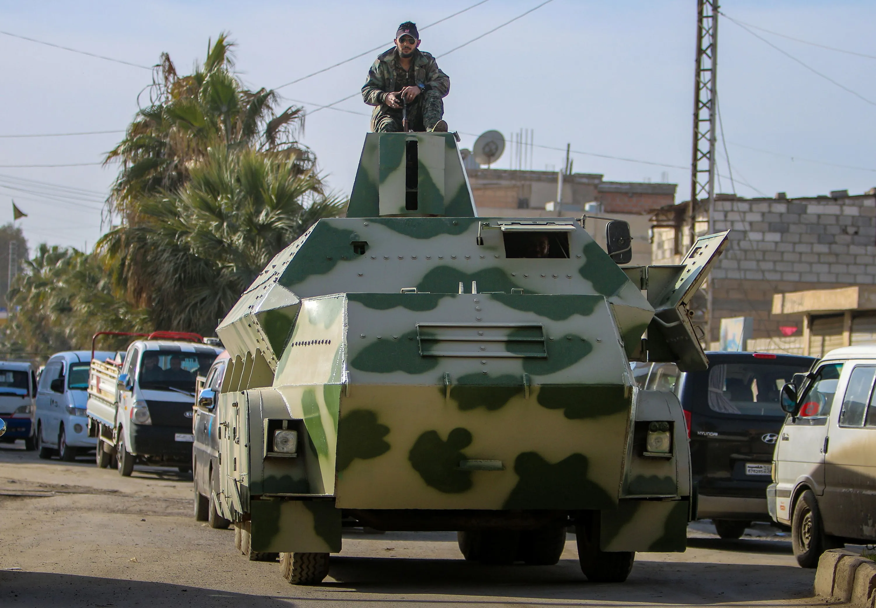 Fighters of the Kurdish People's Protection Units (YPG) drive a makeshift armoured vehicle along a street in the northeastern province of al-Hasaka, February 2, 2015. (Photo by Rodi Said/Reuters)