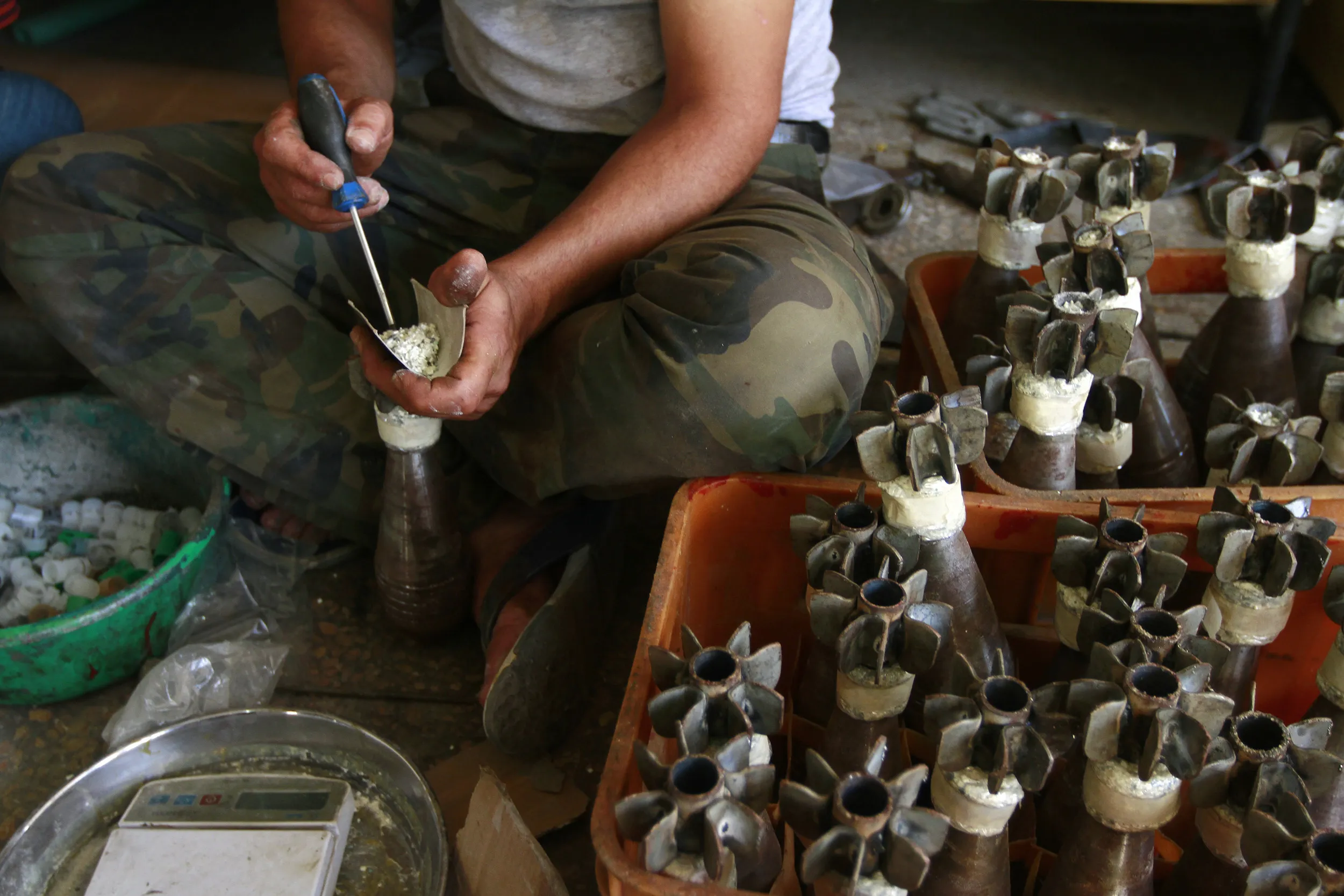 A Free Syrian Army fighter makes improvised mortar shells at a weapons factory in Aleppo, September 4, 2013. (Photo by Hamid Khatib/Reuters)