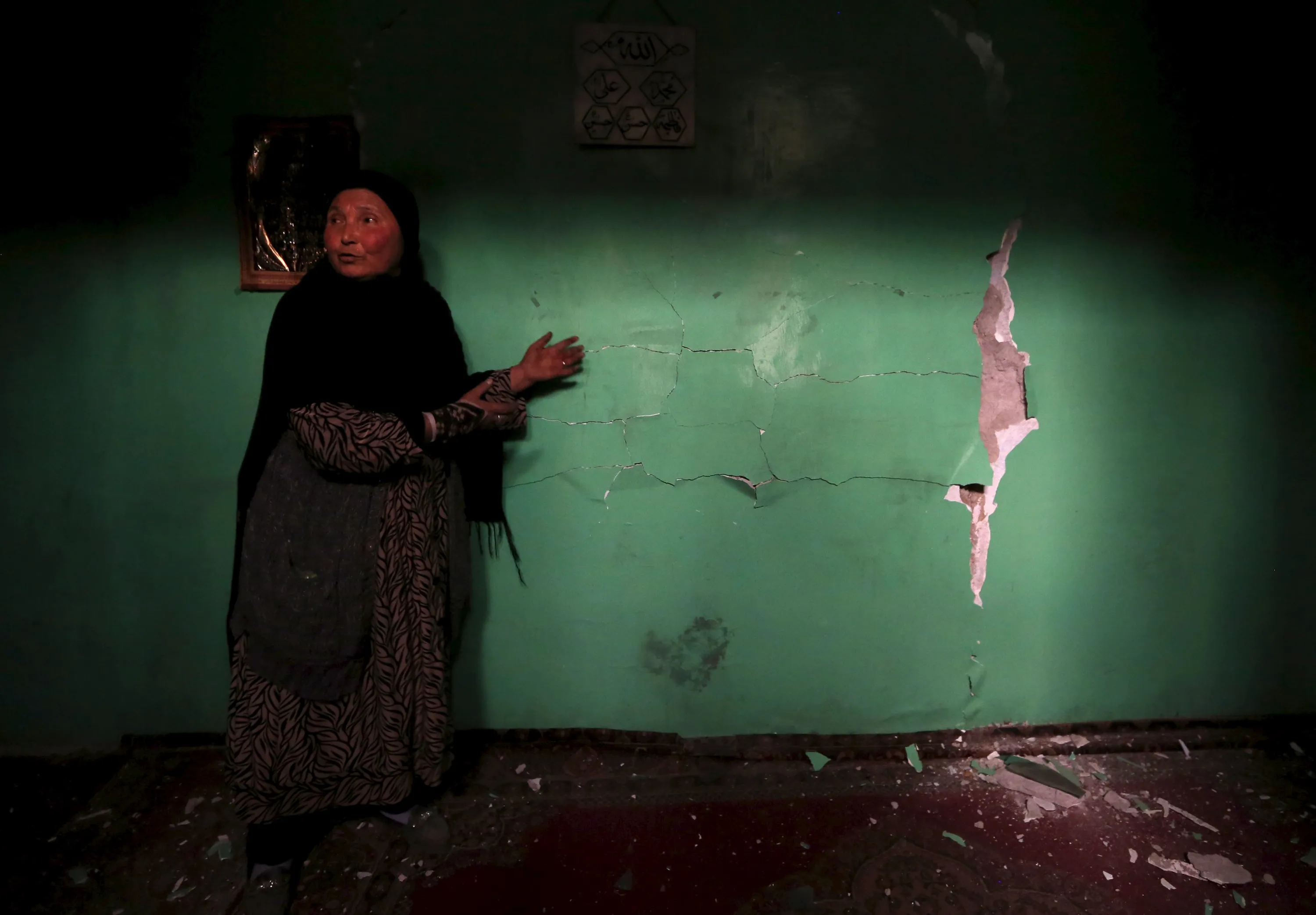 An Afghan woman shows a damaged wall of a shrine after a suicide attack in Kabul March 25, 2015. (Photo by Omar Sobhani/Reuters)