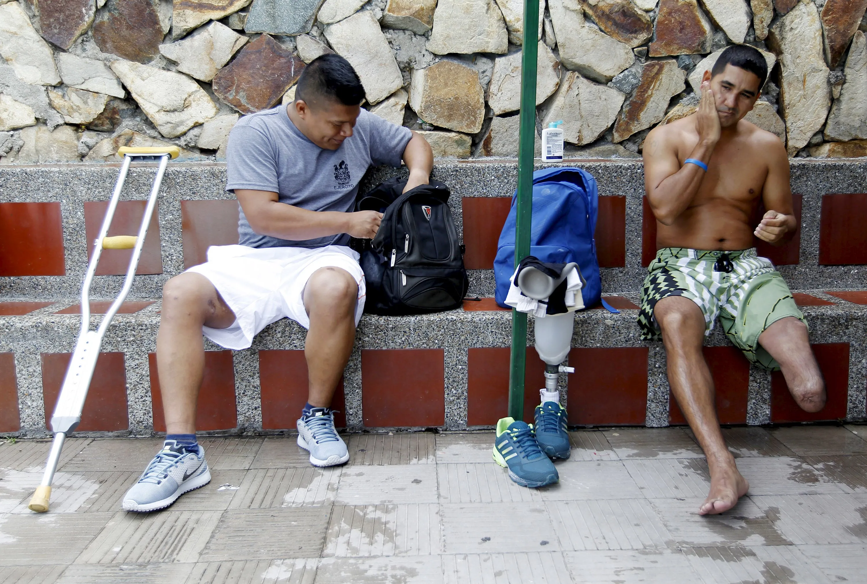 National Army of Colombia soldiers, who were wounded by mines, visit a swimming pool to exercise in Bello, municipality of Antioquia, March 25, 2015. (Photo by Fredy Builes/Reuters)