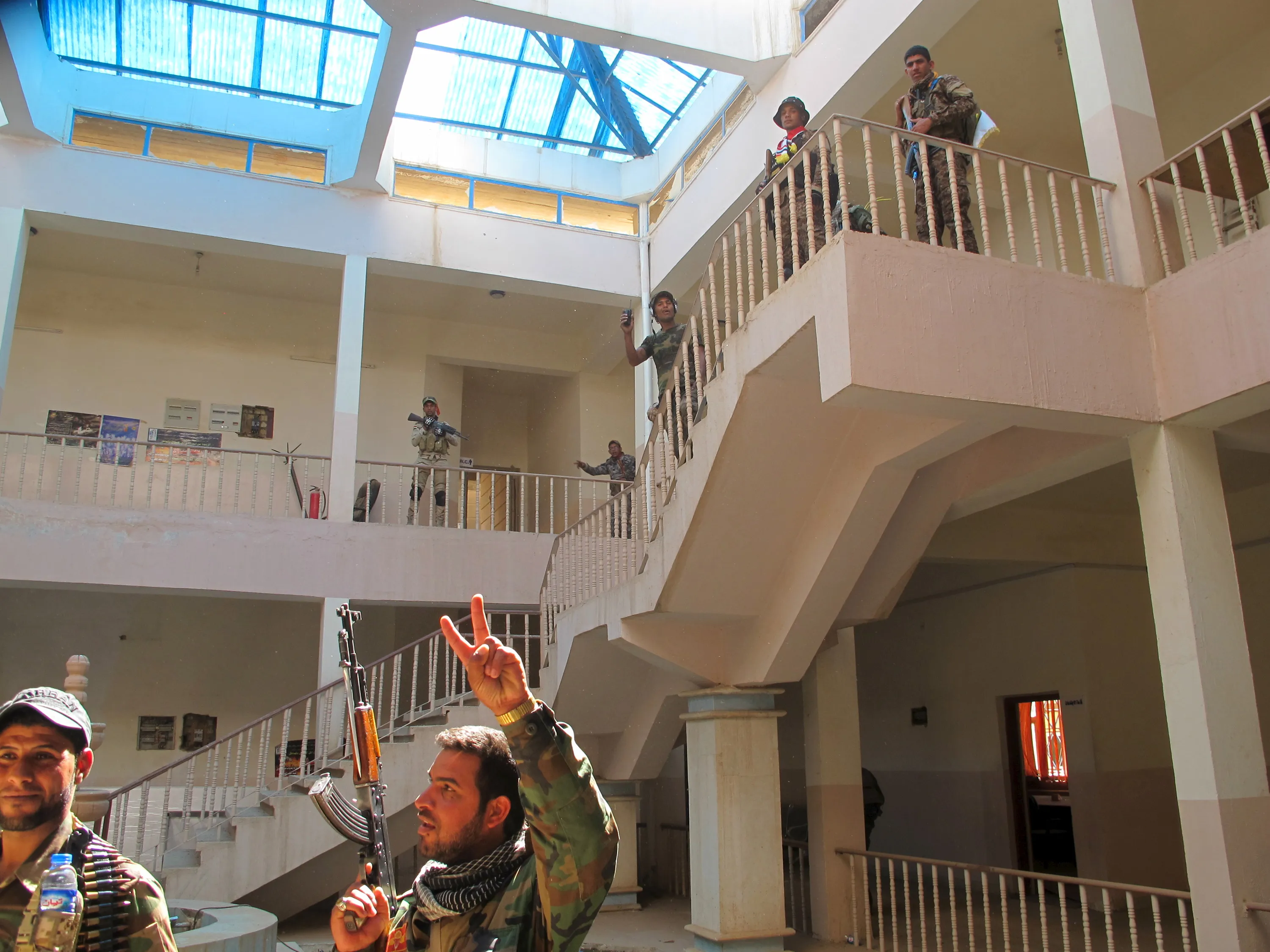 Shiite paramilitary fighters inspect a building in Tikrit March 31, 2015. (Photo by Reuters/Stringer)
