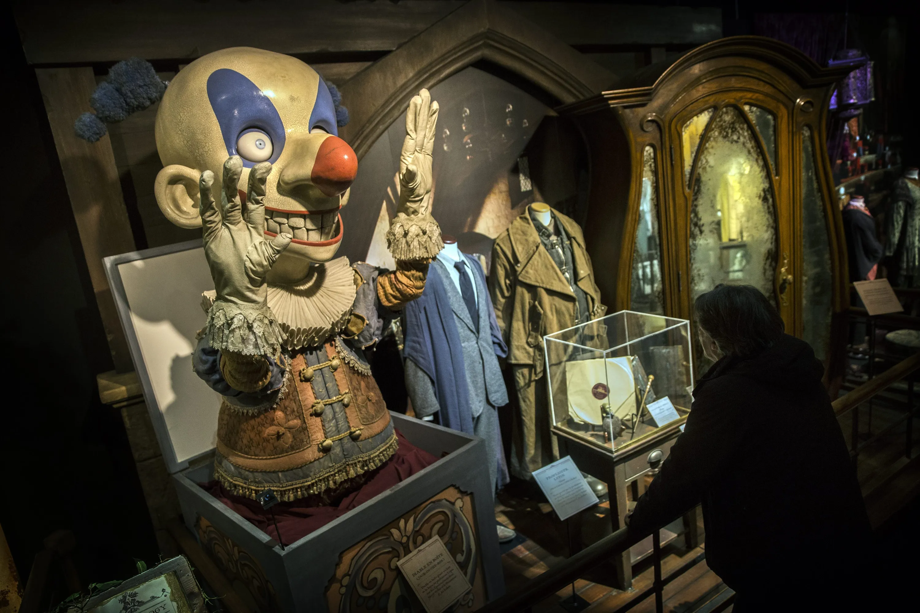 A visitor looks at movie props, including a jack-in-the-box (L), during the press opening of the Harry Potter exhibition at the Cite du Cinema in Paris, France, 02 April 2015. The exhibition runs from 04 April to 06 September. (Photo by Etienne Laurent/EPA)