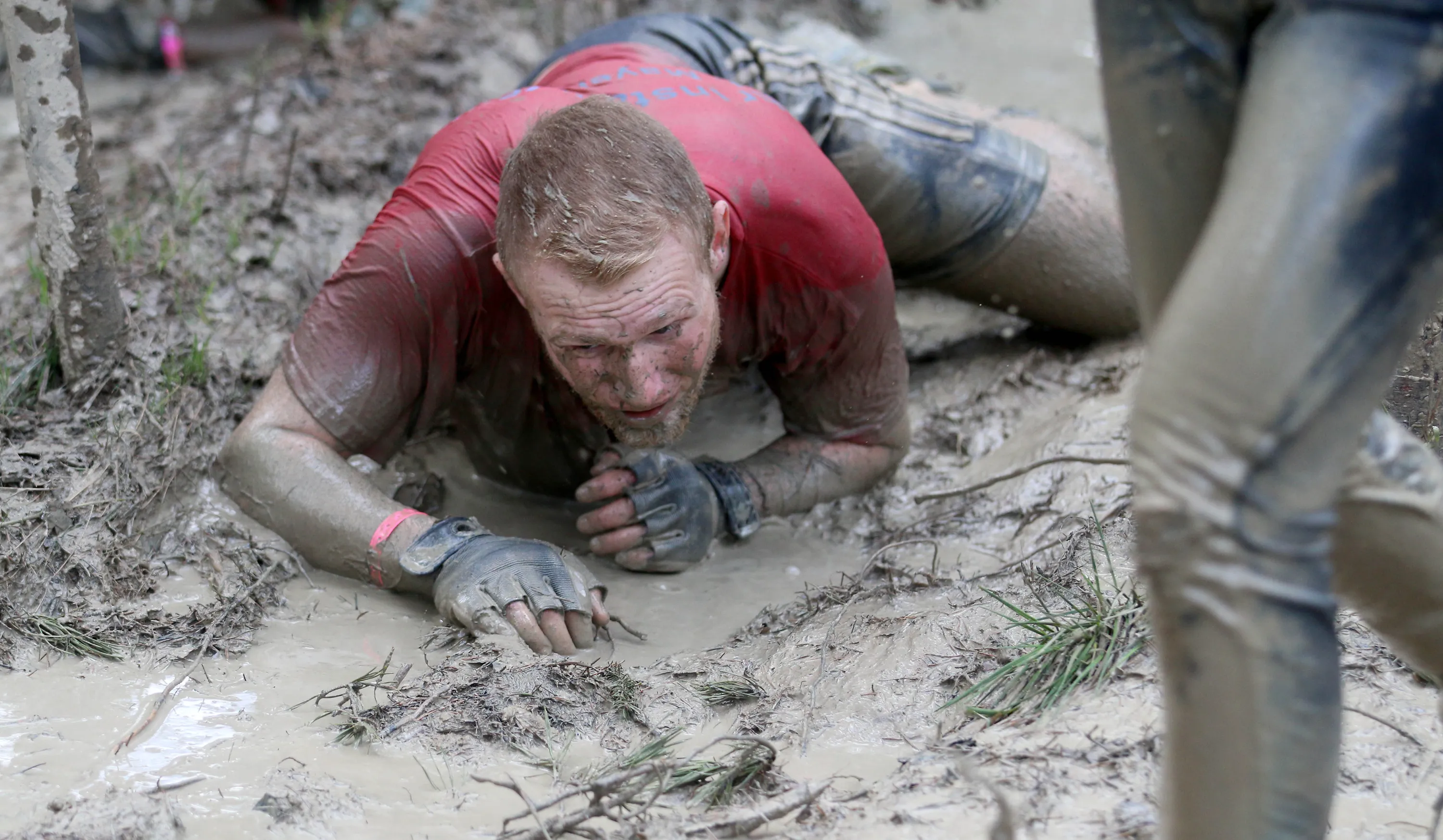 A participant of the Wild Sau Dirt Run 2015 passes a mud hole in Obertriesting, Lower Austria, Austria, Saturday, April 4, 2015. (Photo by Ronald Zak/AP Photo)