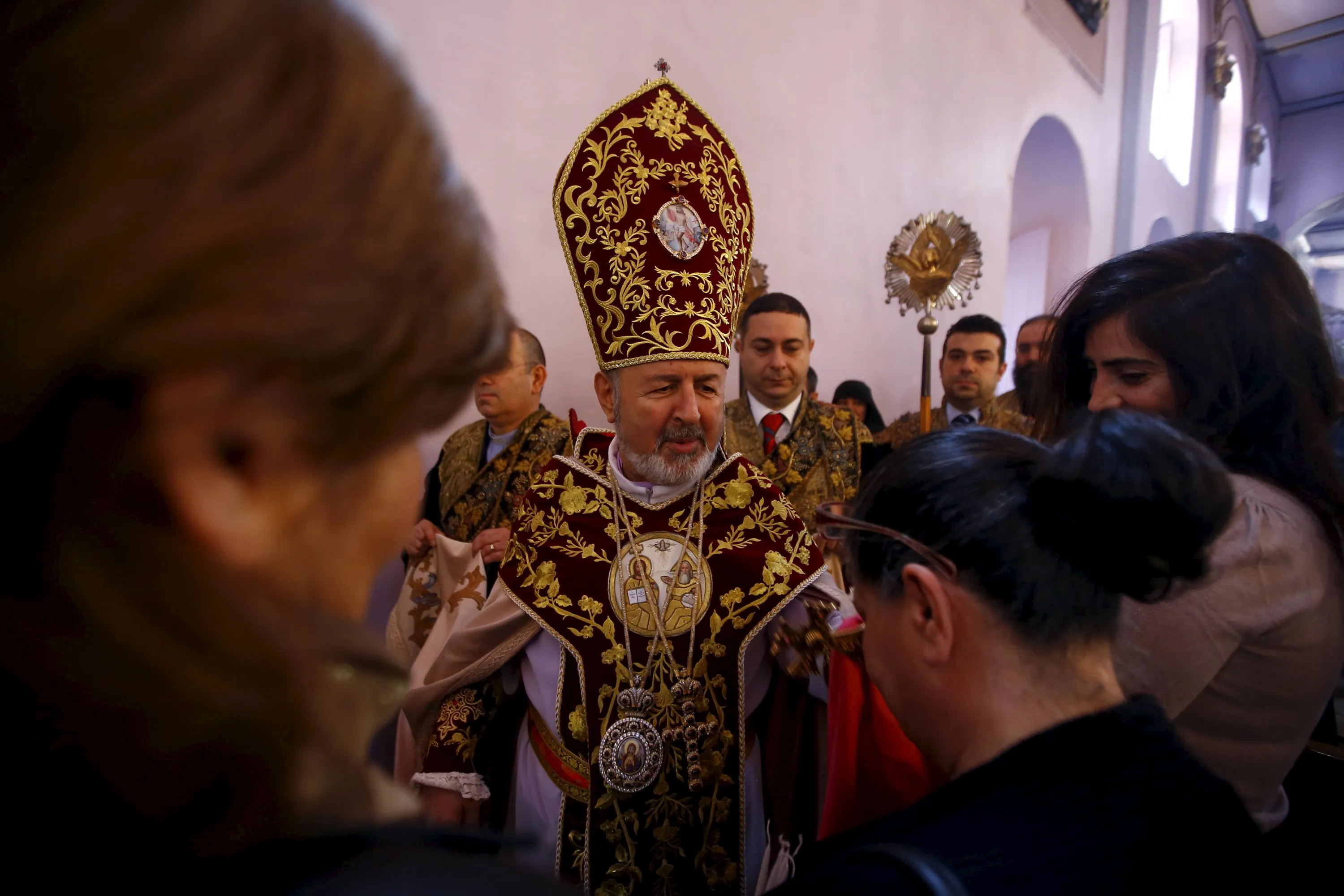 Archbishop Aram Atesyan, General Vicar of Armenian Patriarch in Turkey leads an Easter service at the Surp Asdvadzadzin Patriarchal Church in Istanbul April 5, 2015. (Photo by Osman Orsal/Reuters)