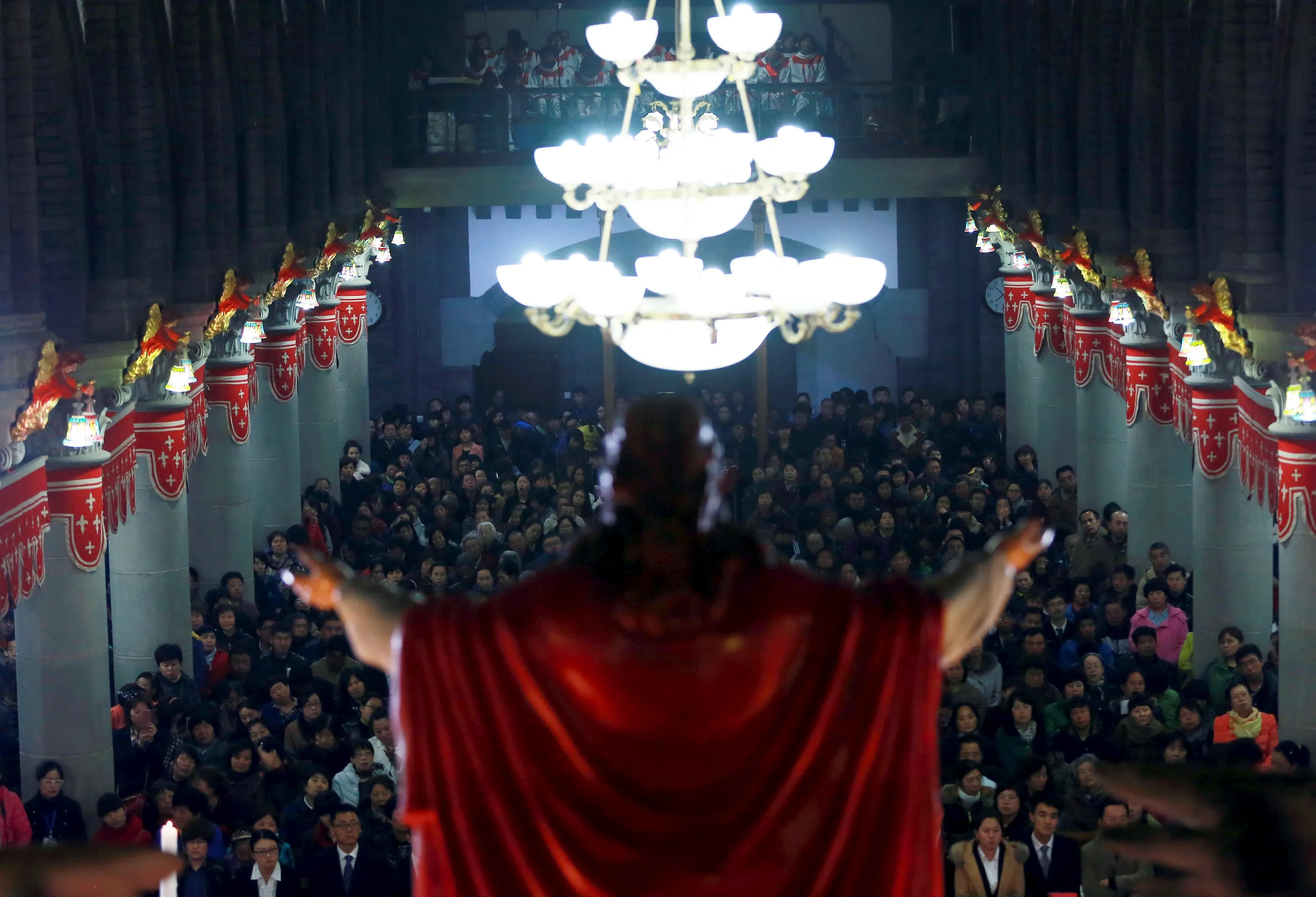 Worshippers attend an Easter mass on the eve of Easter, at a Catholic church in Shenyang, Liaoning province, April 4, 2015. Picture taken April 4, 2015. (Photo by Reuters/Stringer)