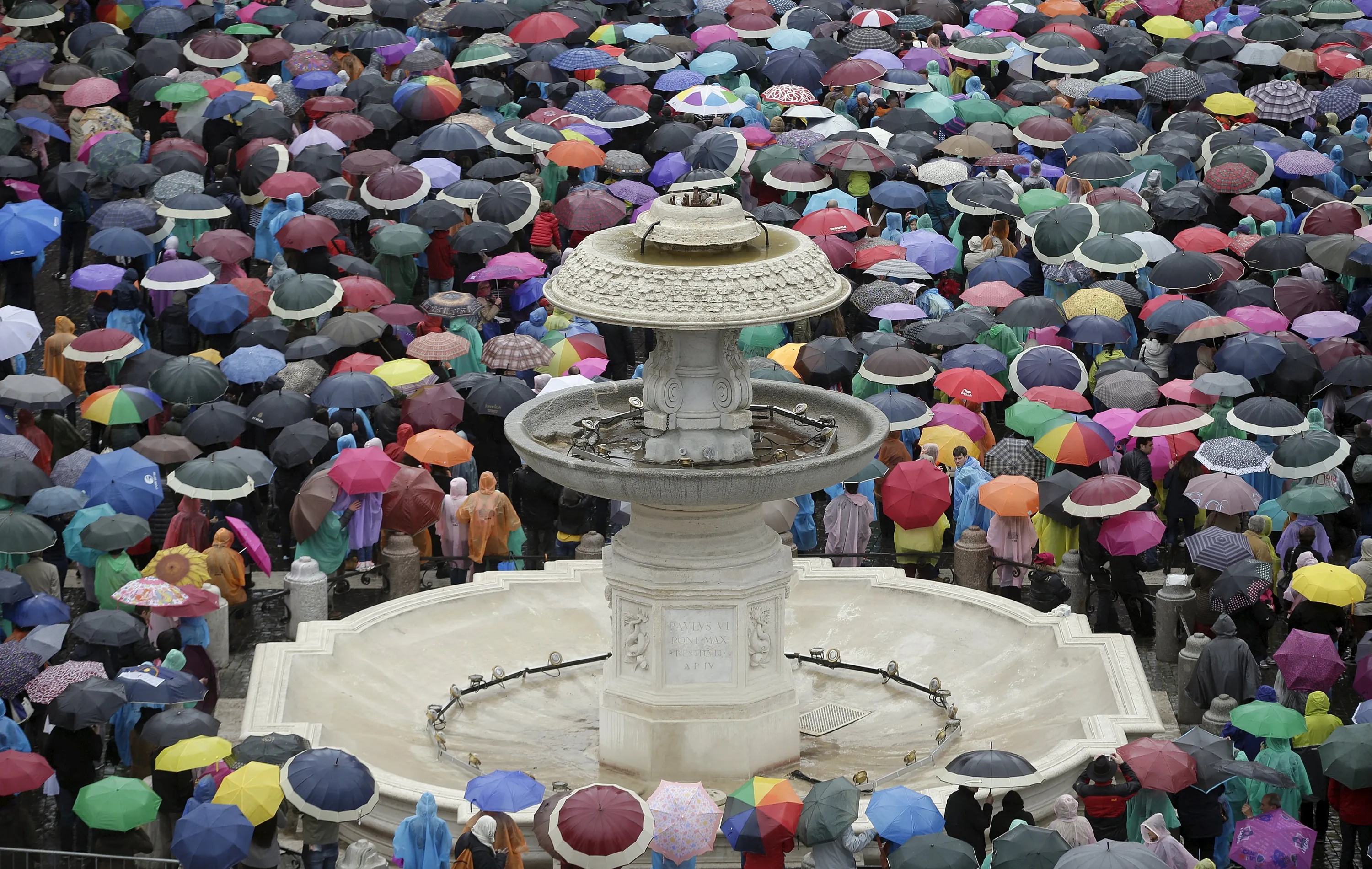 Faithful attend as Pope Francis leads the Easter mass in St. Peter's square at the Vatican April 5, 2015. (Photo by Max Rossi/Reuters)
