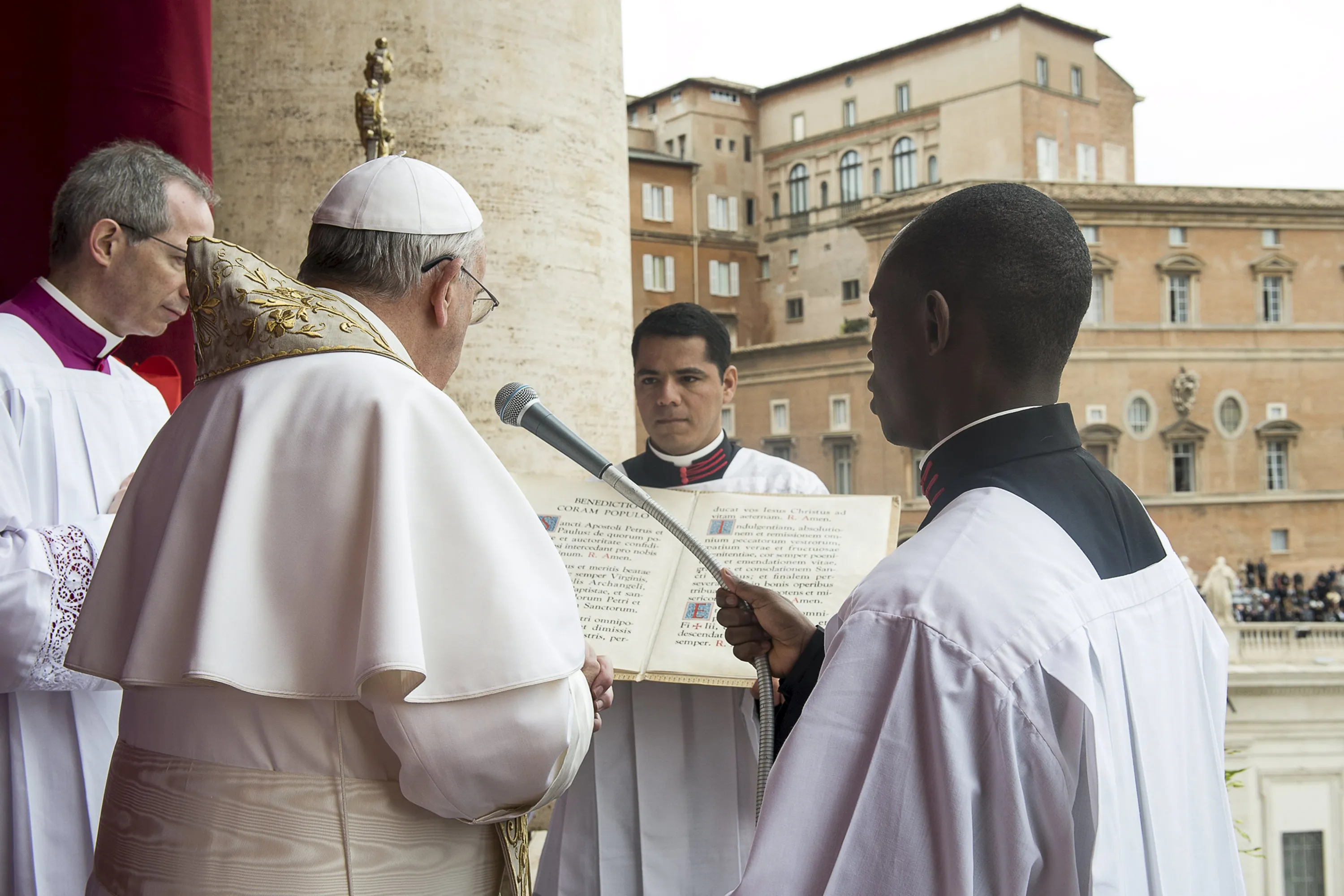 Pope Francis delivers a “Urbi et Orbi” message from the balcony overlooking St. Peter's Square at the Vatican April 5, 2015. (Photo by Osservatore Romano/Reuters)