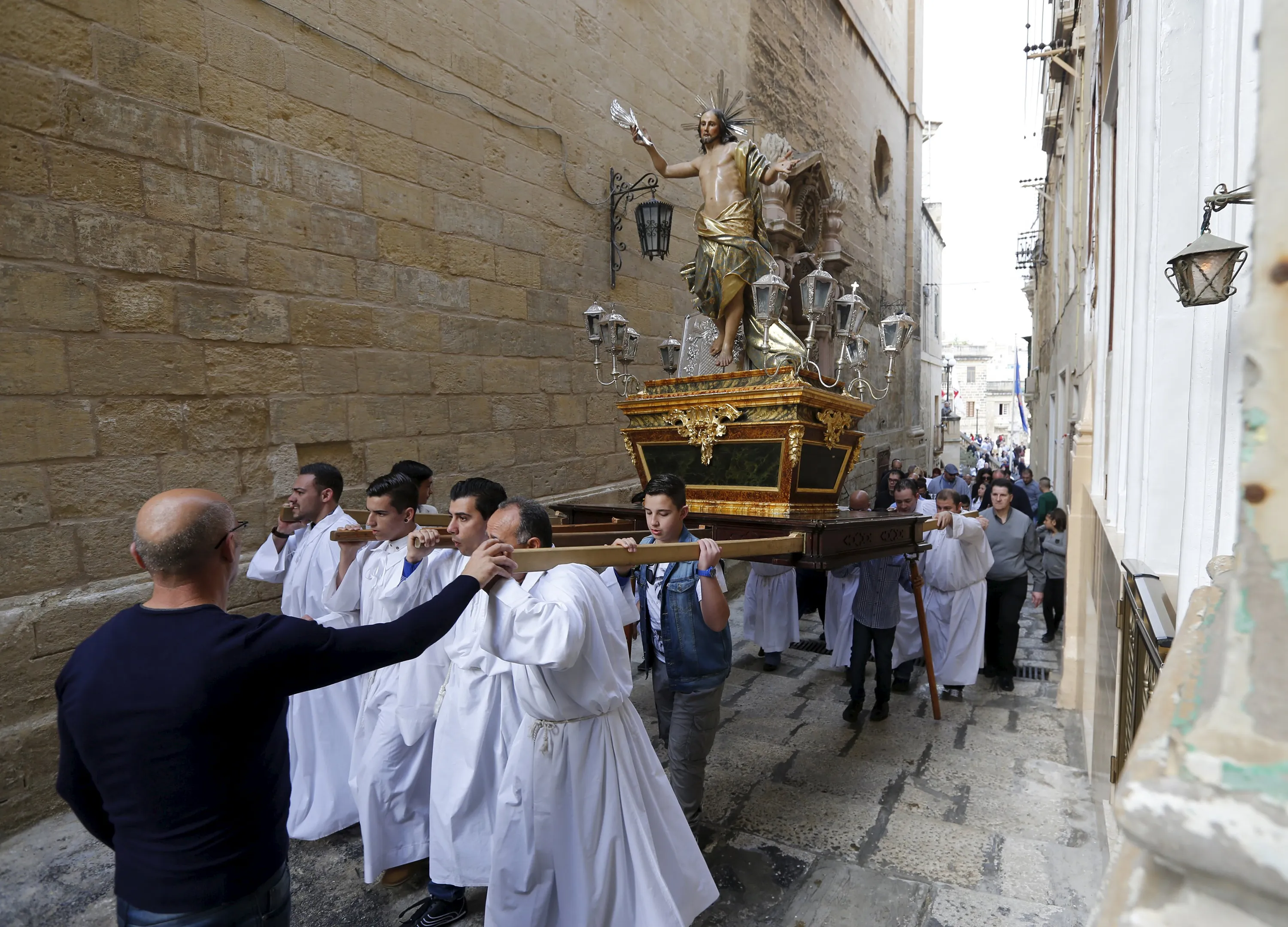 Worshippers carry a statue of the Risen Christ during an Easter Sunday procession in Cospicua, outside Valletta April 5, 2015. (Photo by Darrin Zammit Lupi/Reuters)