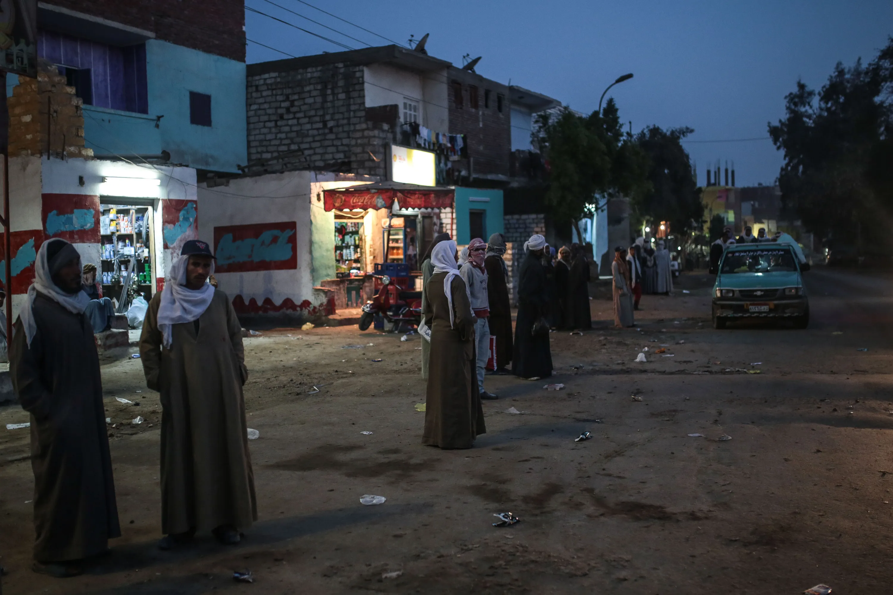 In this Wednesday, March 18, 2015 photo, quarry workers wait for trucks to transport them to work after dawn in Shurafa village, Minya, southern Egypt. Quarry workers – many children younger than Baskharoon – are overwhelmingly day laborers. (Photo by Mosa'ab Elshamy/AP Photo)