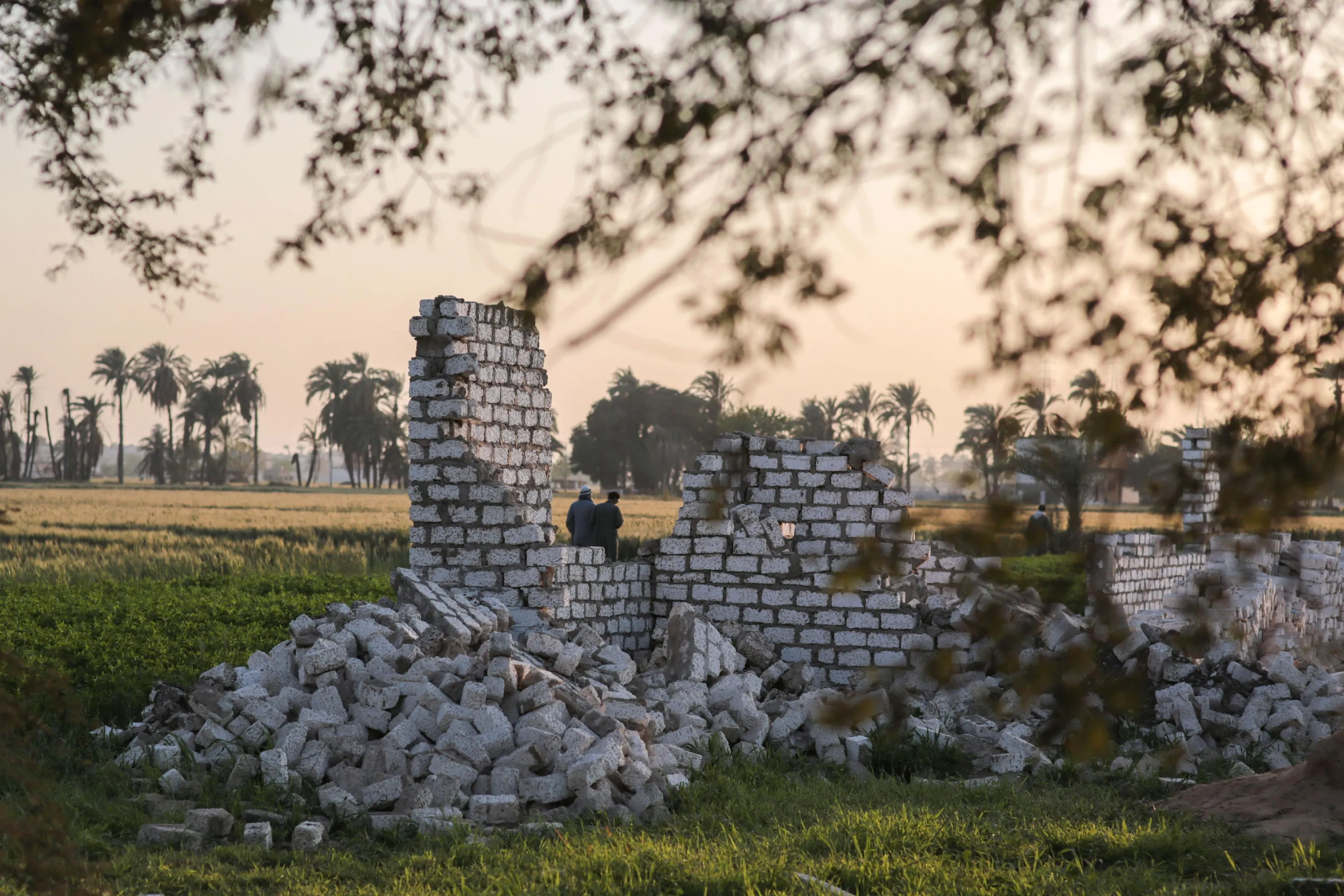 In this Wednesday, March 18, 2015 photo, people walk past an unfinished building constructed of limestone bricks in Tehna village, Minya, southern Egypt. (Photo by Mosa'ab Elshamy/AP Photo)