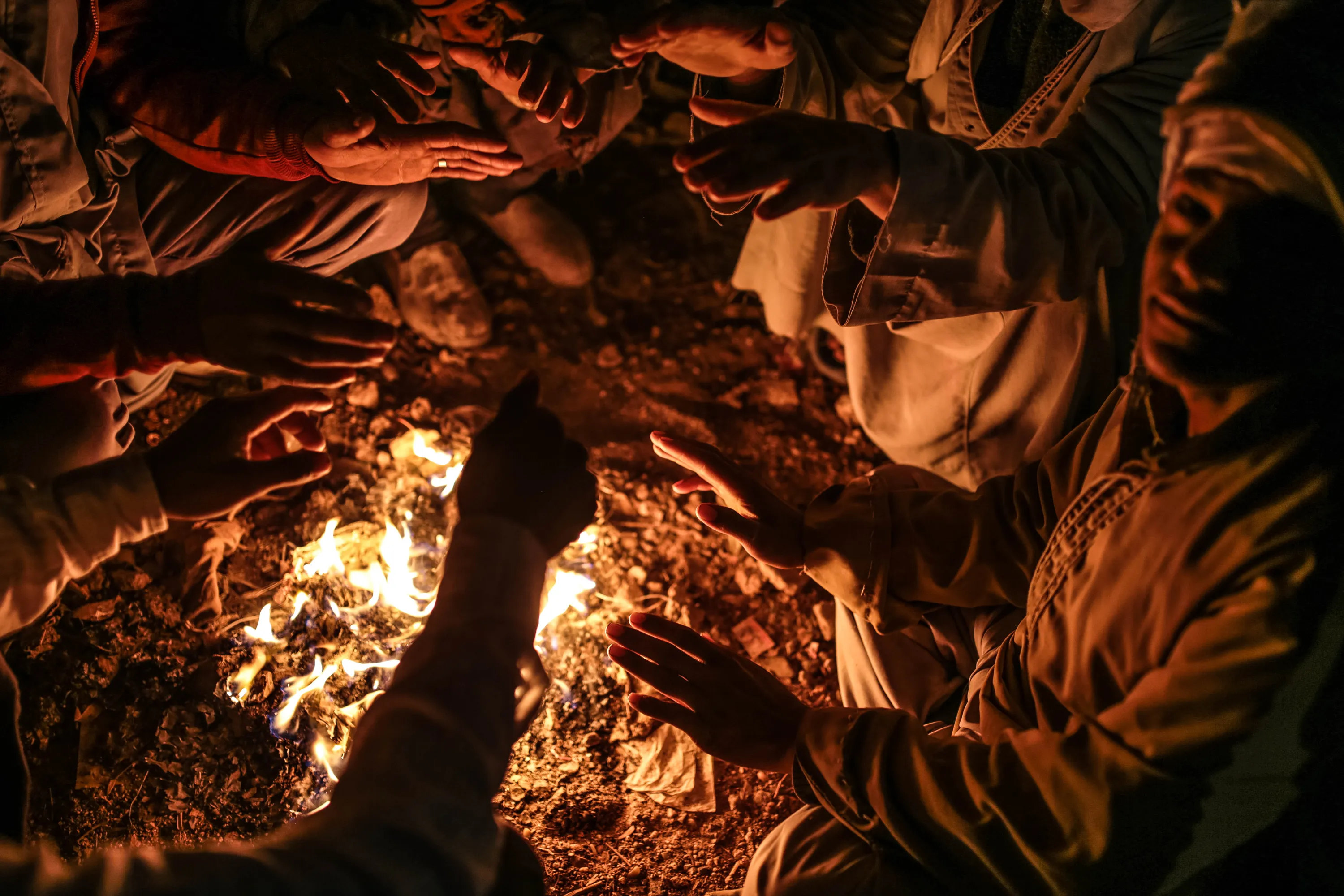 In this Wednesday, March 18, 2015 photo, quarry workers try to keep themselves warm around a bonfire as they wait for work after dawn in Shurafa village, Minya, southern Egypt. (Photo by Mosa'ab Elshamy/AP Photo)