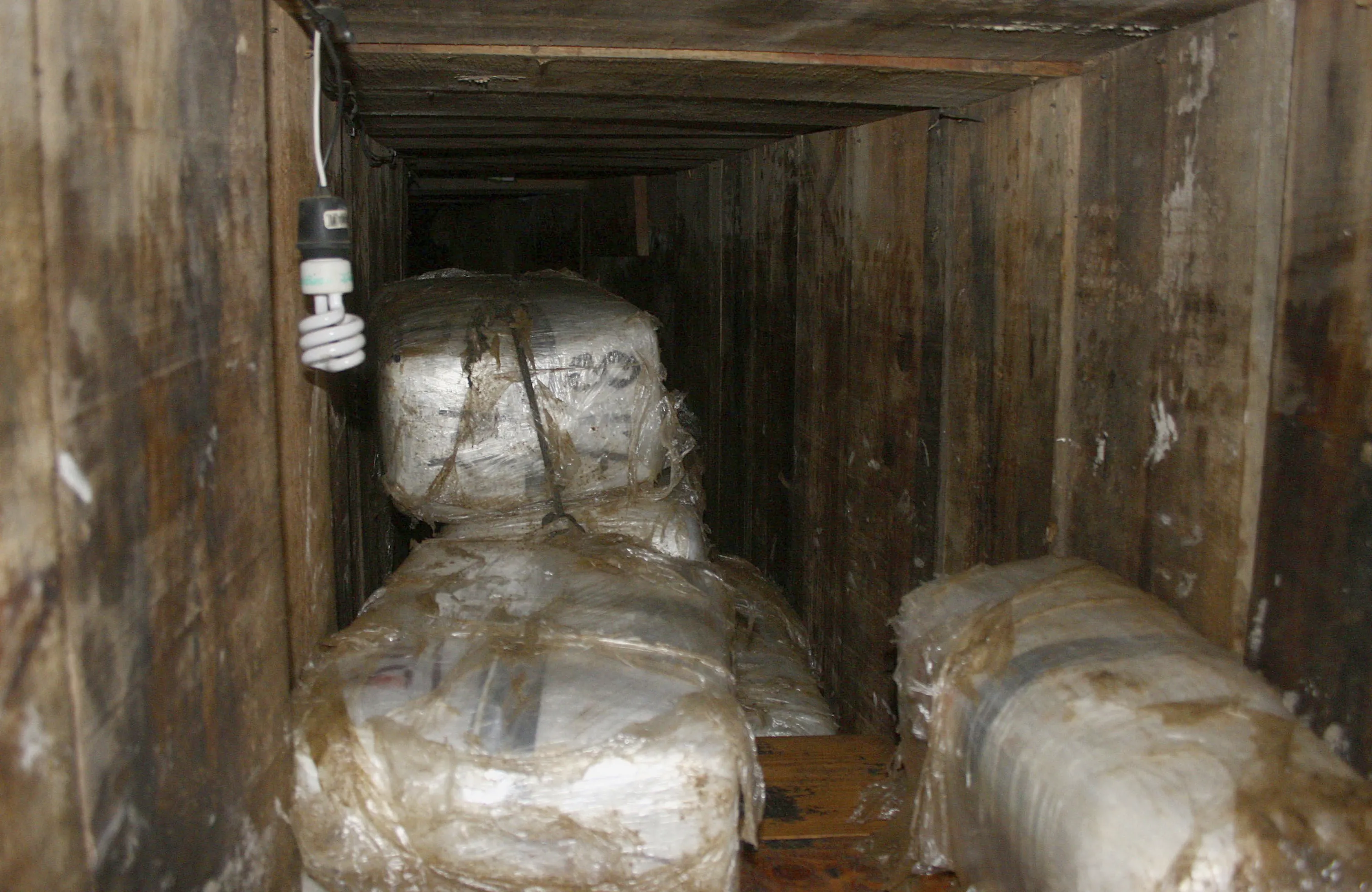 Packs of marijuana are stored in a tunnel in Tijuana, November 3, 2010. (Photo by Jorge Duenes/Reuters)