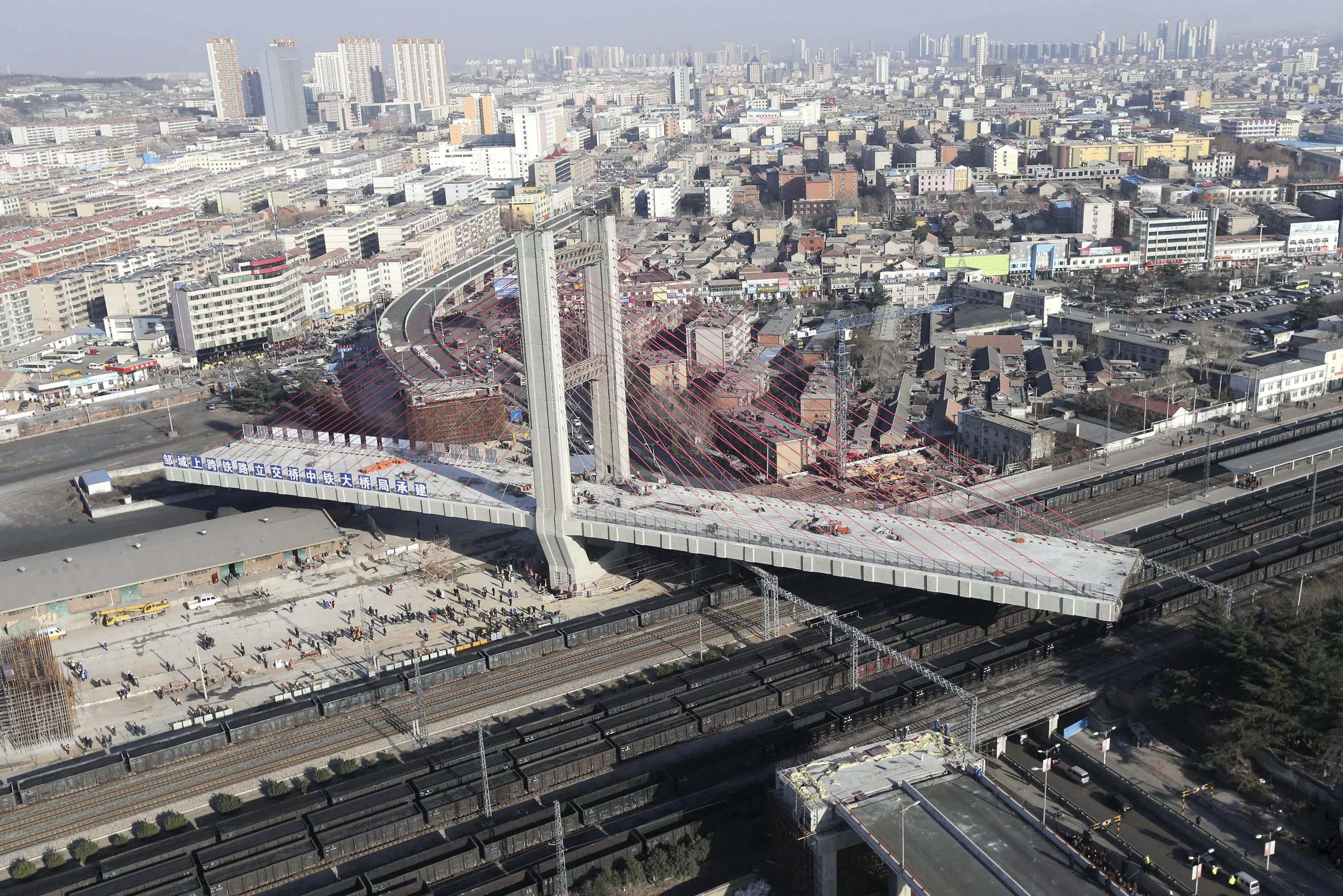 A part of an overpass under construction is turned around in Zoucheng, Shandong province, in this January 19, 2015 file photo. (Photo by Reuters/China Daily)