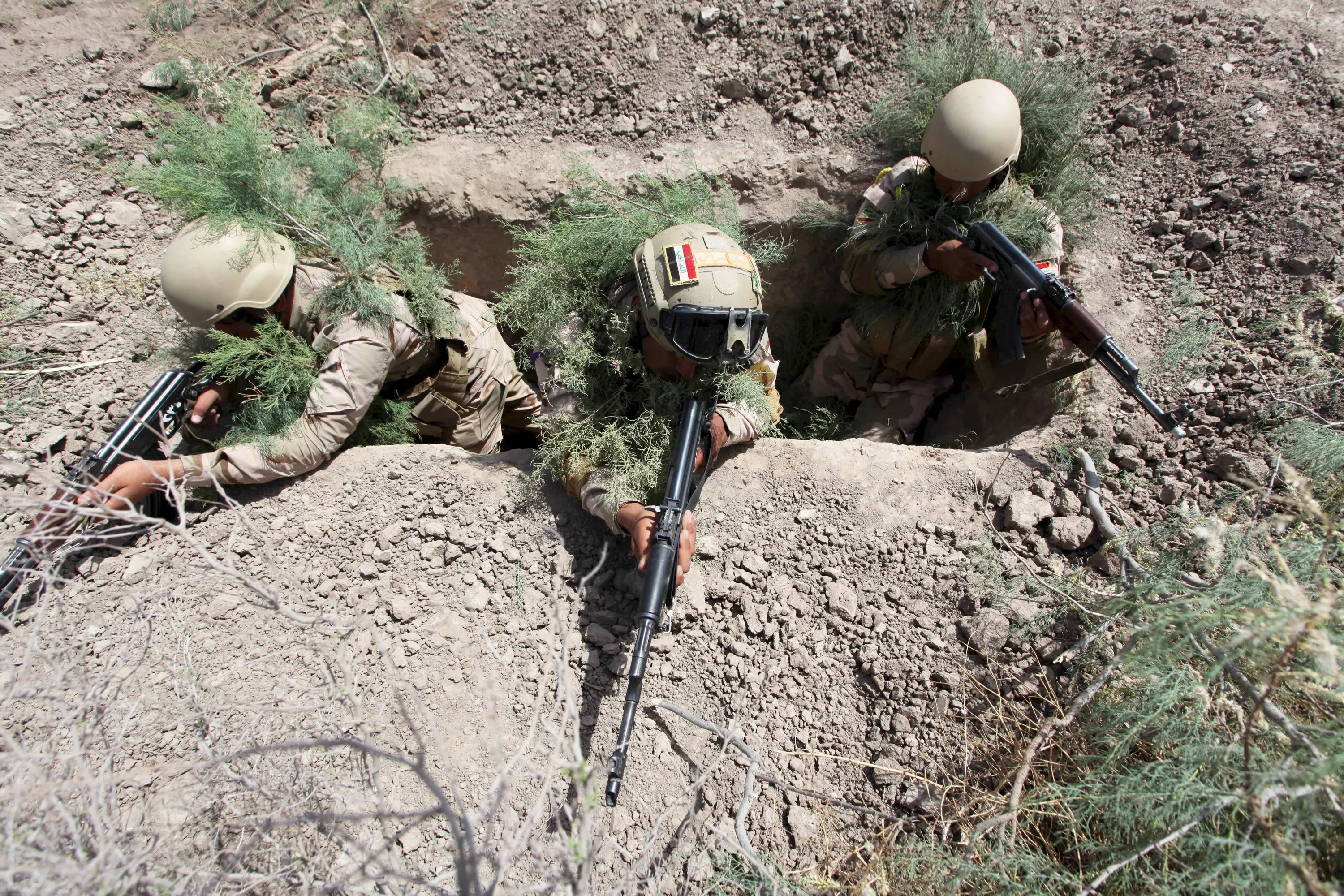 Iraqi security forces cary their weapons during military training in Jurf al-Sakhar, Iraq April 9, 2015. (Photo by Alaa Al-Marjani/Reuters)