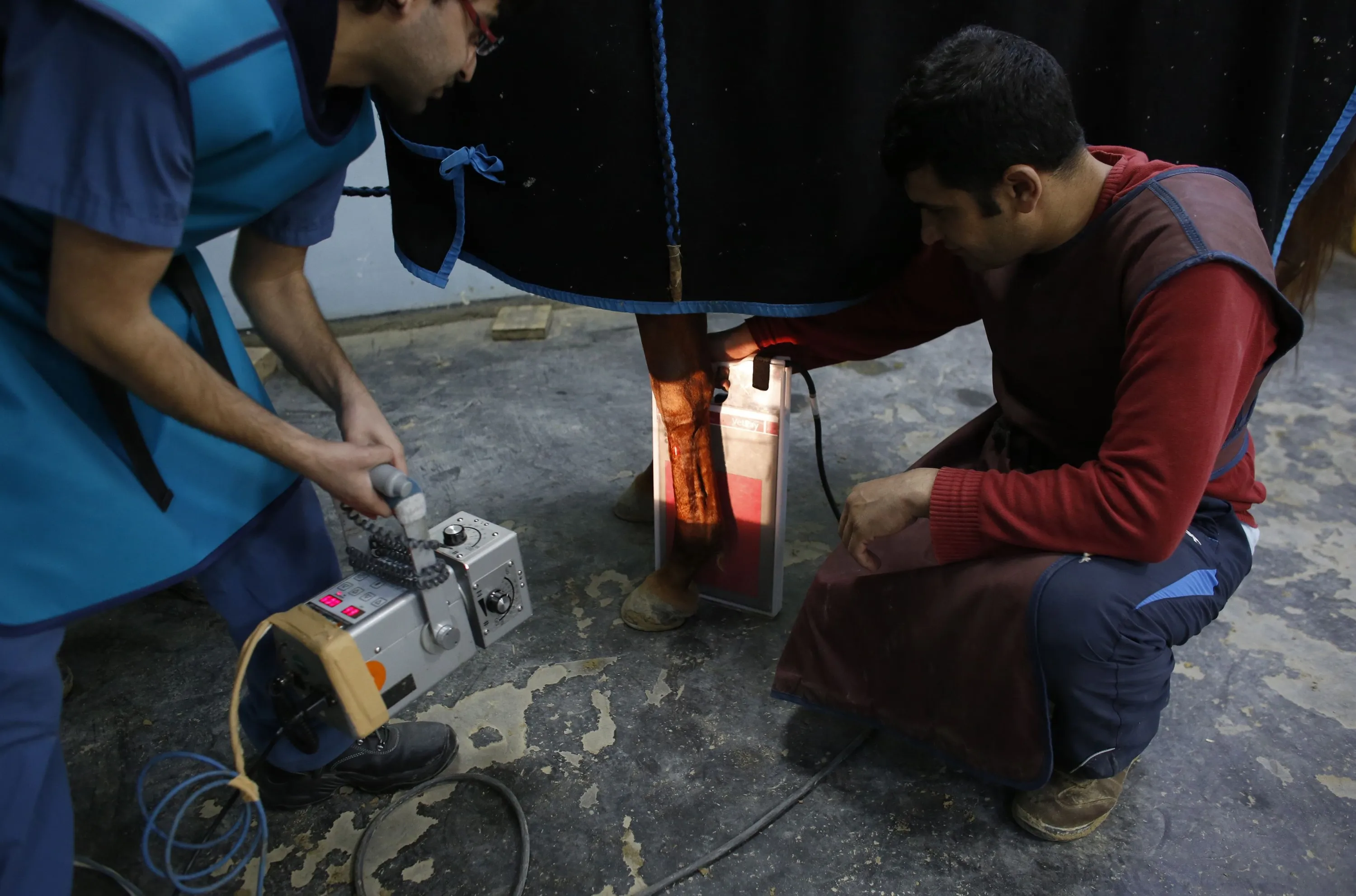 An X-ray is taken of a racehorse's leg at Veliefendi equine hospital in Istanbul March 27, 2015. (Photo by Murad Sezer/Reuters)