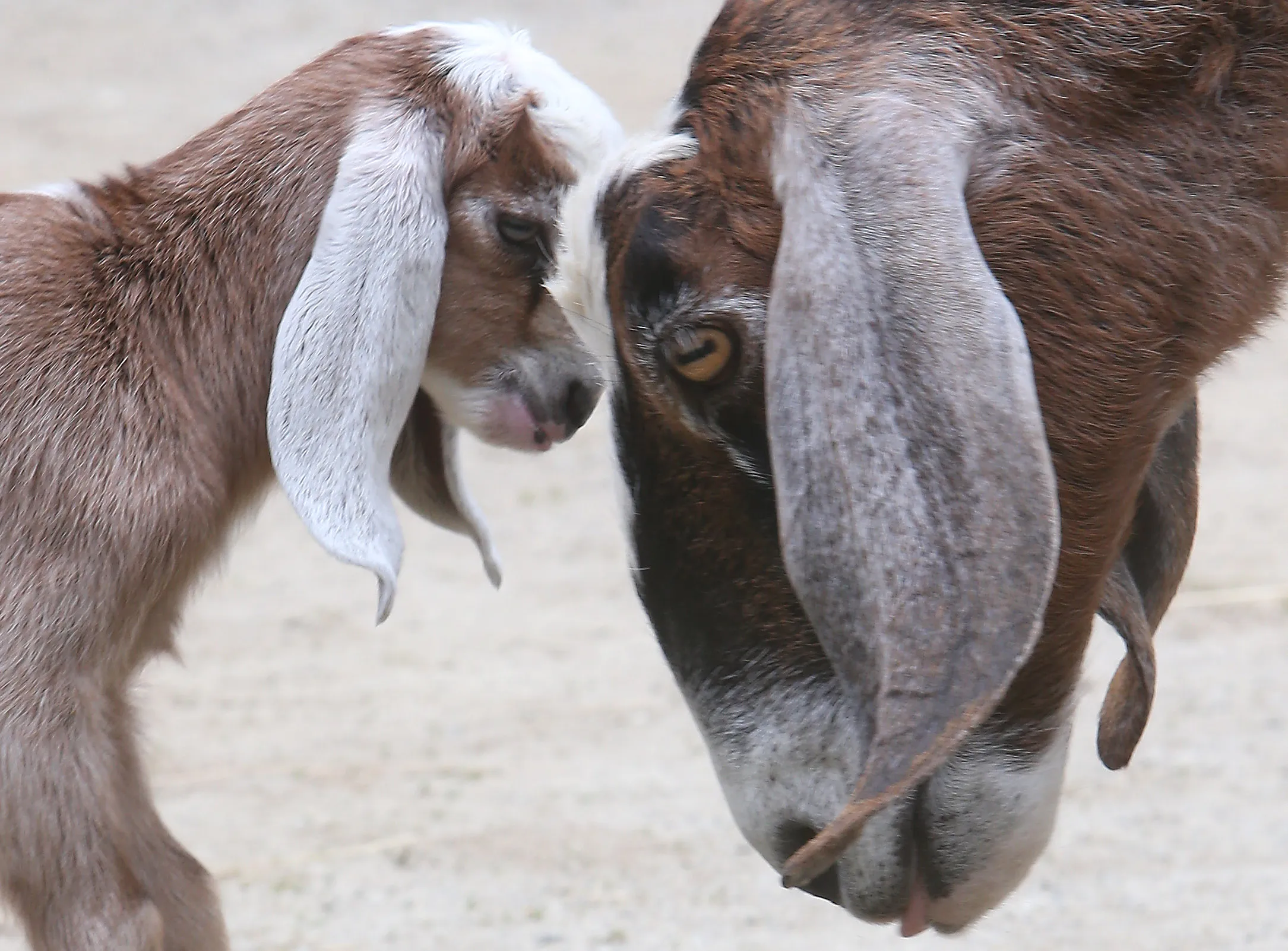 Nancy, a newborn Nubian goat, stands with her mother, Nikki, at the Carl Sandburg Home National Historic Site, in Flat Rock, N.C., Monday, April 6, 2015. Nancy, who was born on Sunday, is the first kid born at the Sandburg home this year. (Photo by Mike Dirks/AP Photo/The Times-News)