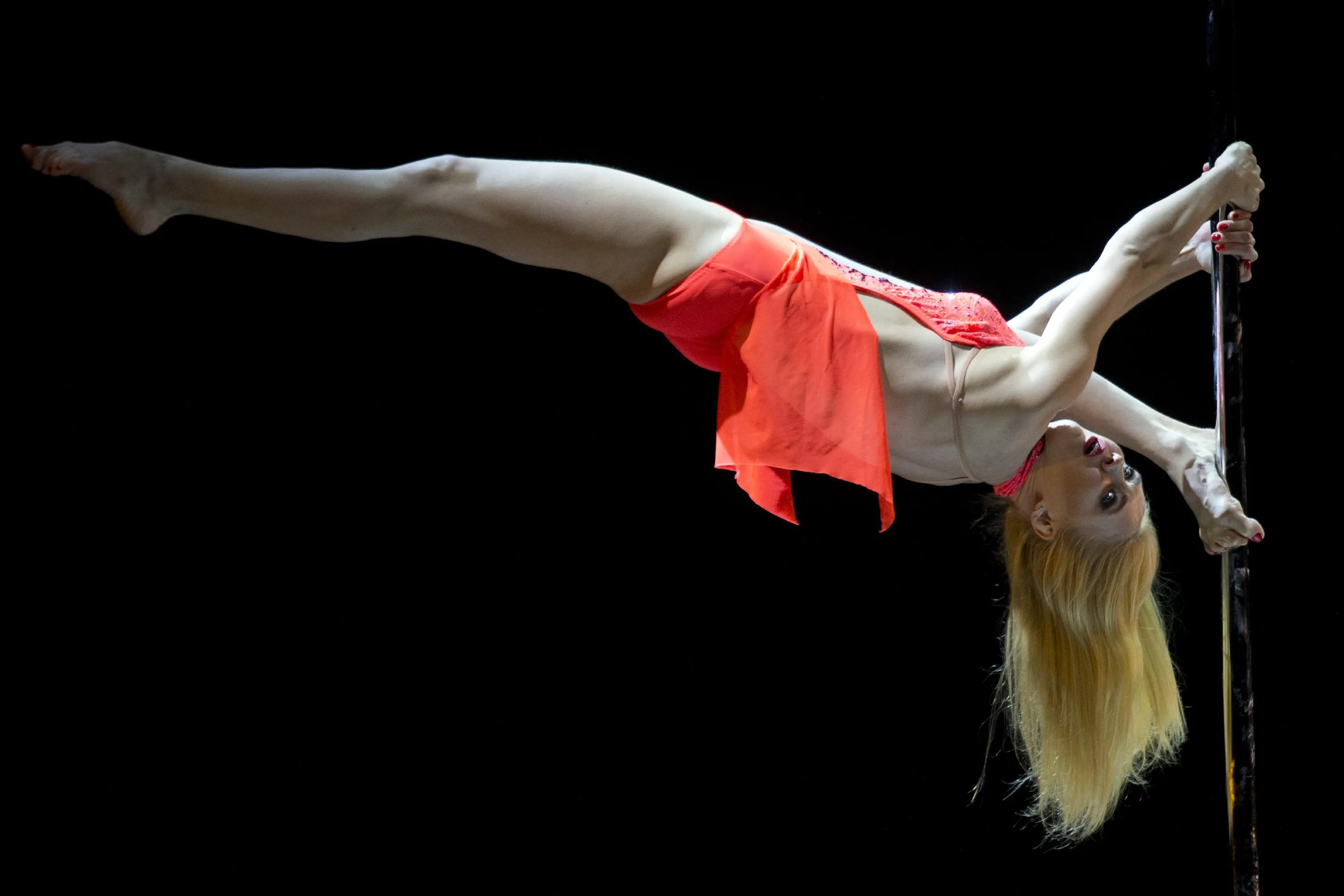 Ukraine's Hanna Antonova competes during the 2015 World Pole Dance Championships held in Beijing, Sunday, April 12, 2015. (Photo by Ng Han Guan/AP Photo)