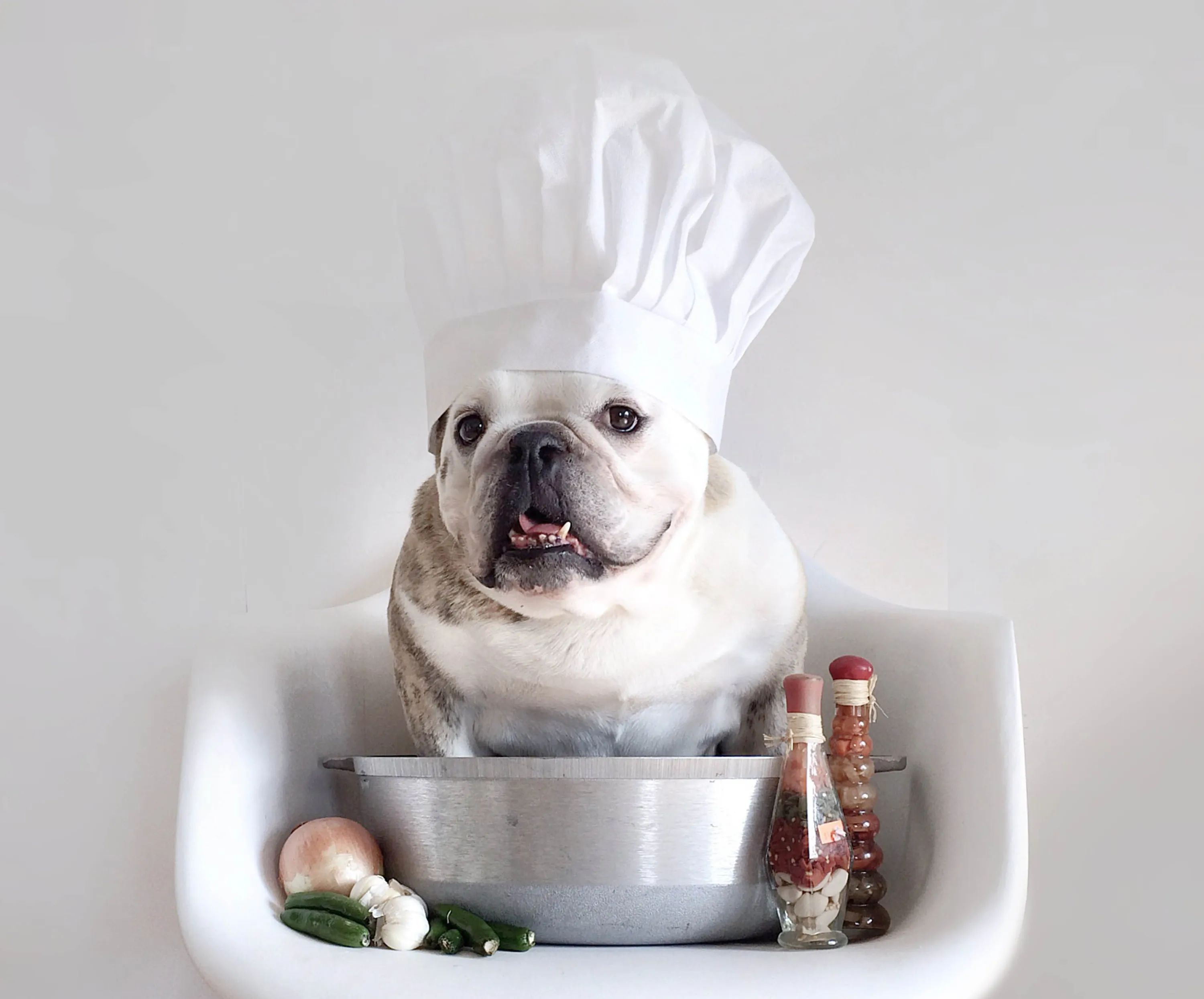 Maya the bulldog as a chef. (Photo by Tania Ahsan/Caters News)
