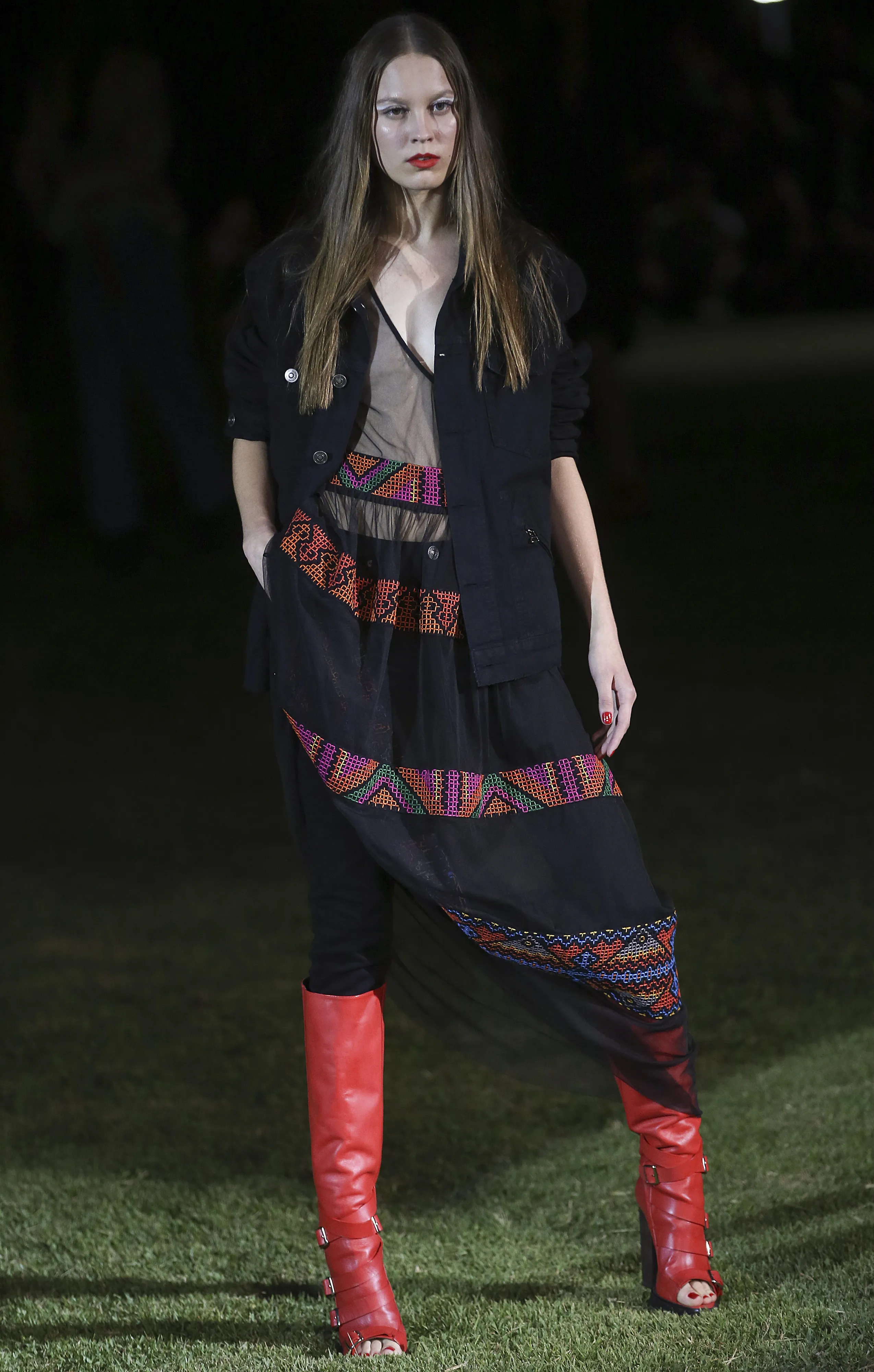 A model wears a creation from Cavalera Summer collection during the Sao Paulo Fashion Week in Sao Paulo, Brazil, Monday, April 13, 2015. (Photo by Andre Penner/AP Photo)