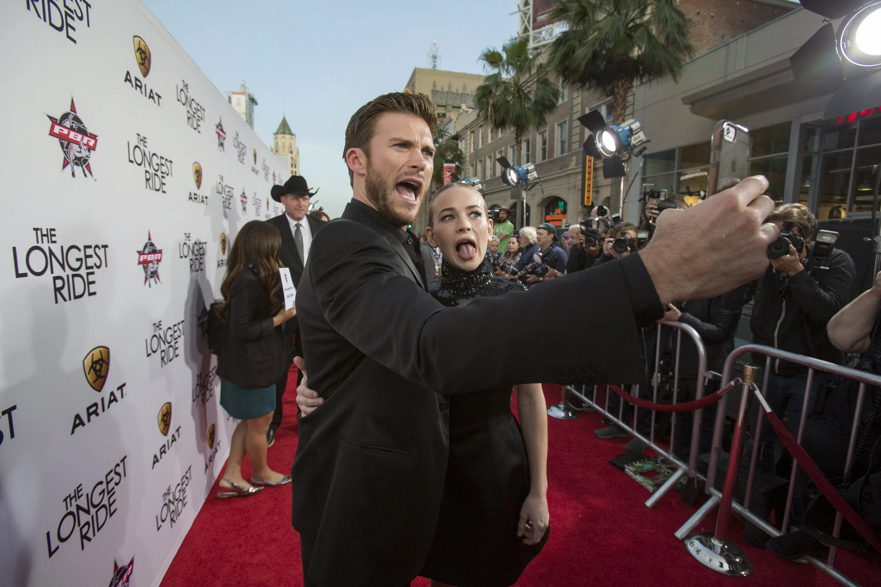 Cast members Scott Eastwood and Britt Robertson take a selfie at the premiere of “The Longest Ride” at the TCL Chinese theatre in Hollywood, California April 6, 2015. (Photo by Mario Anzuoni/Reuters)