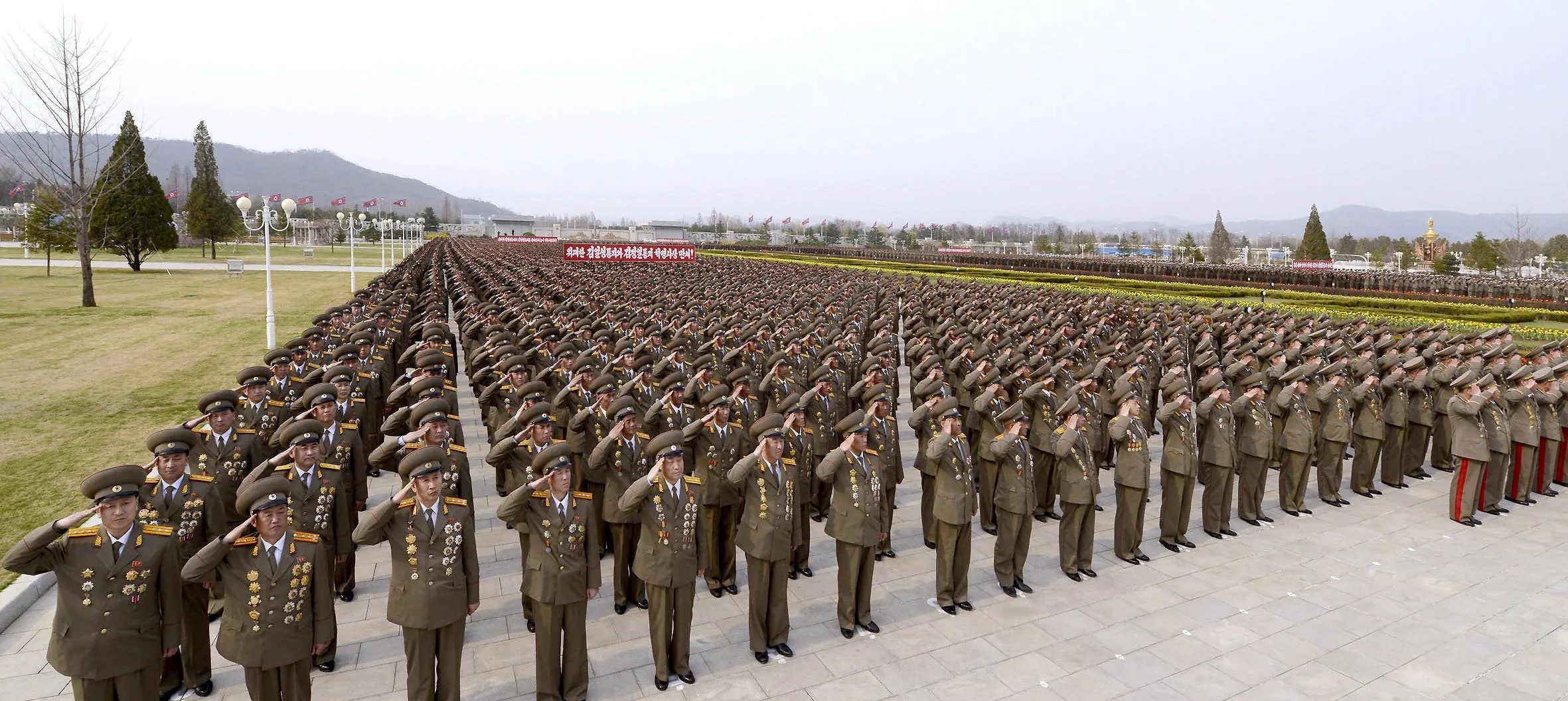 Korean People's Army personnel take part in a ceremony marking the birth anniversary of late leader Kim Il Sung at the Kumsusan Palace of the Sun in Pyongyang April 12, 2015 in this photo released by North Korea's Korean Central News Agency (KCNA) April 13, 2015. (Photo by Reuters/KCNA)