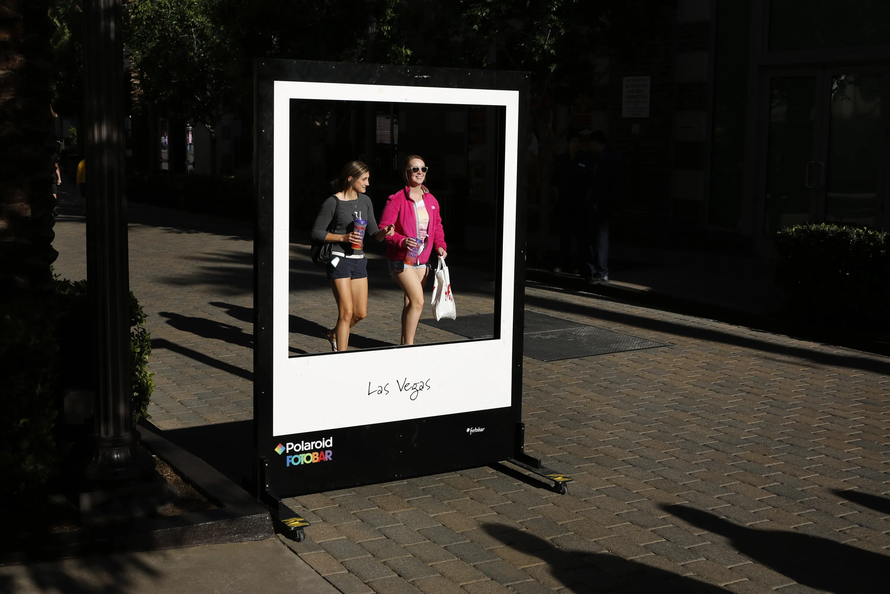 In this April 15, 2015, photo, people walk by the Polaroid Fotobar store at the Linq in Las Vegas. Whether you're coming to Las Vegas for a convention, wedding or just a vacation, casinos are just one option, along with shopping, spas, food, nightlife, festivals and various other adventures. (Photo by John Locher/AP Photo)