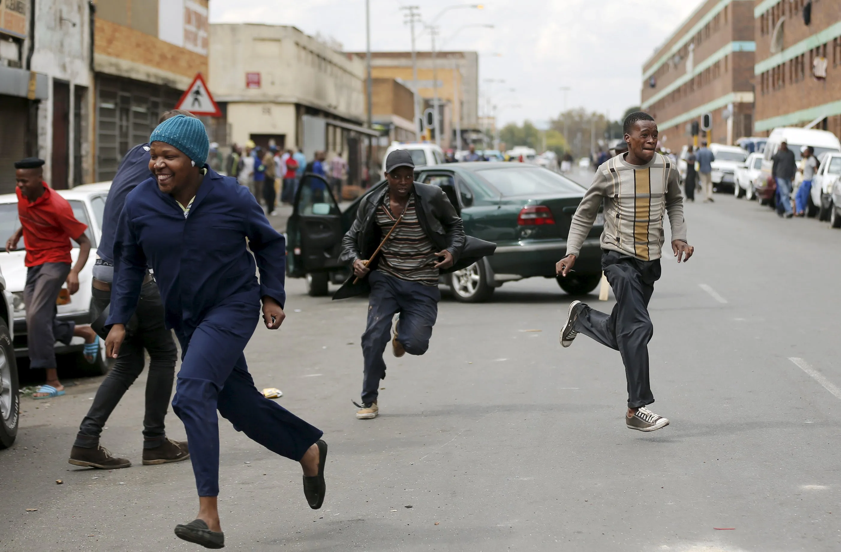 Locals run after trying to rob a foreign motorist in Johannesburg, April 17, 2015. South Africa sought diplomatic support from countries across the continent on Friday to defeat the “demon” of anti-immigrant violence in which at least four people have been killed over the past fortnight. Foreign nationals have complained that the South African police are failing to protect them, raising the prospect of a row between Pretoria and its neighbours, as well as stirring hostility to South Africans working abroad. (Photo by Siphiwe Sibeko/Reuters)