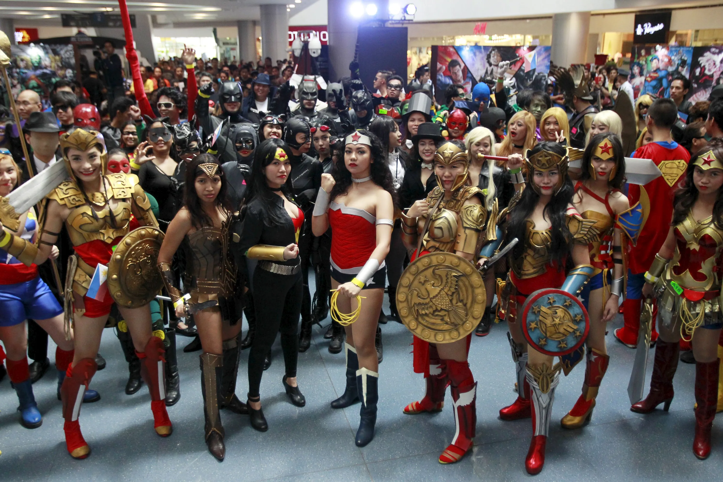Participants wearing superhero costumes pose for photographers during the World DC Comics Super Heroes gathering in Manila April 18, 2015. (Photo by Romeo Ranoco/Reuters)