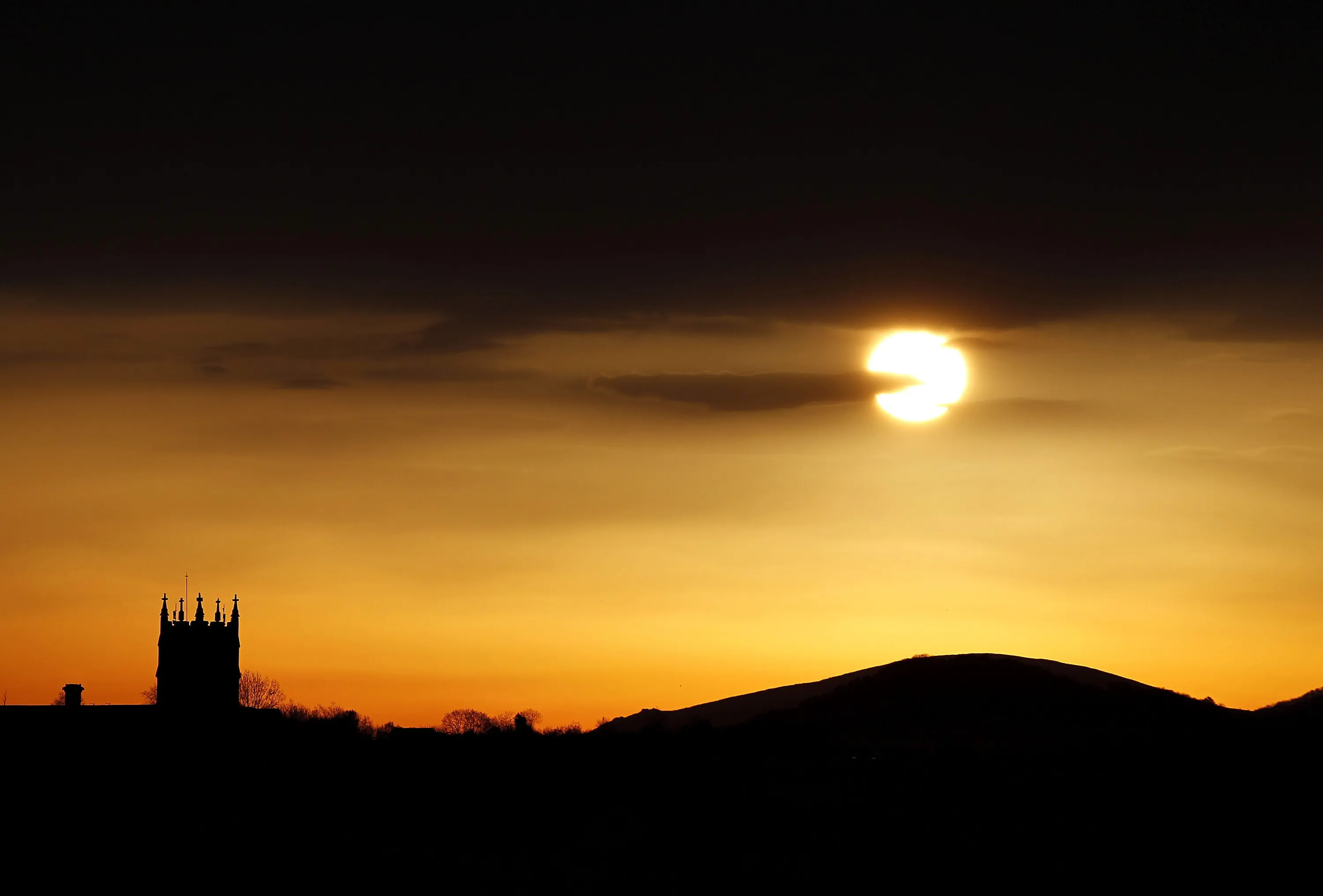 A general view of the sun rising over Zorroaga Mount in San Sebastian city, Basque Country, northern Spain, at dawn, April 9, 2015. (Photo by Javier Etxezarreta/EPA)