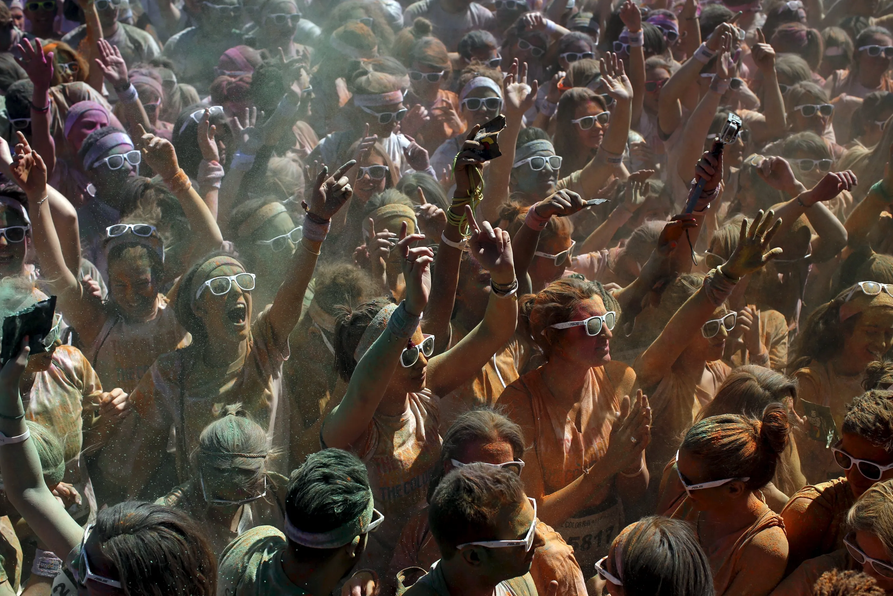 Participants take part in the Color Run near the Eiffel Tower in Paris April 19, 2015. (Photo by Benoit Tessier/Reuters)