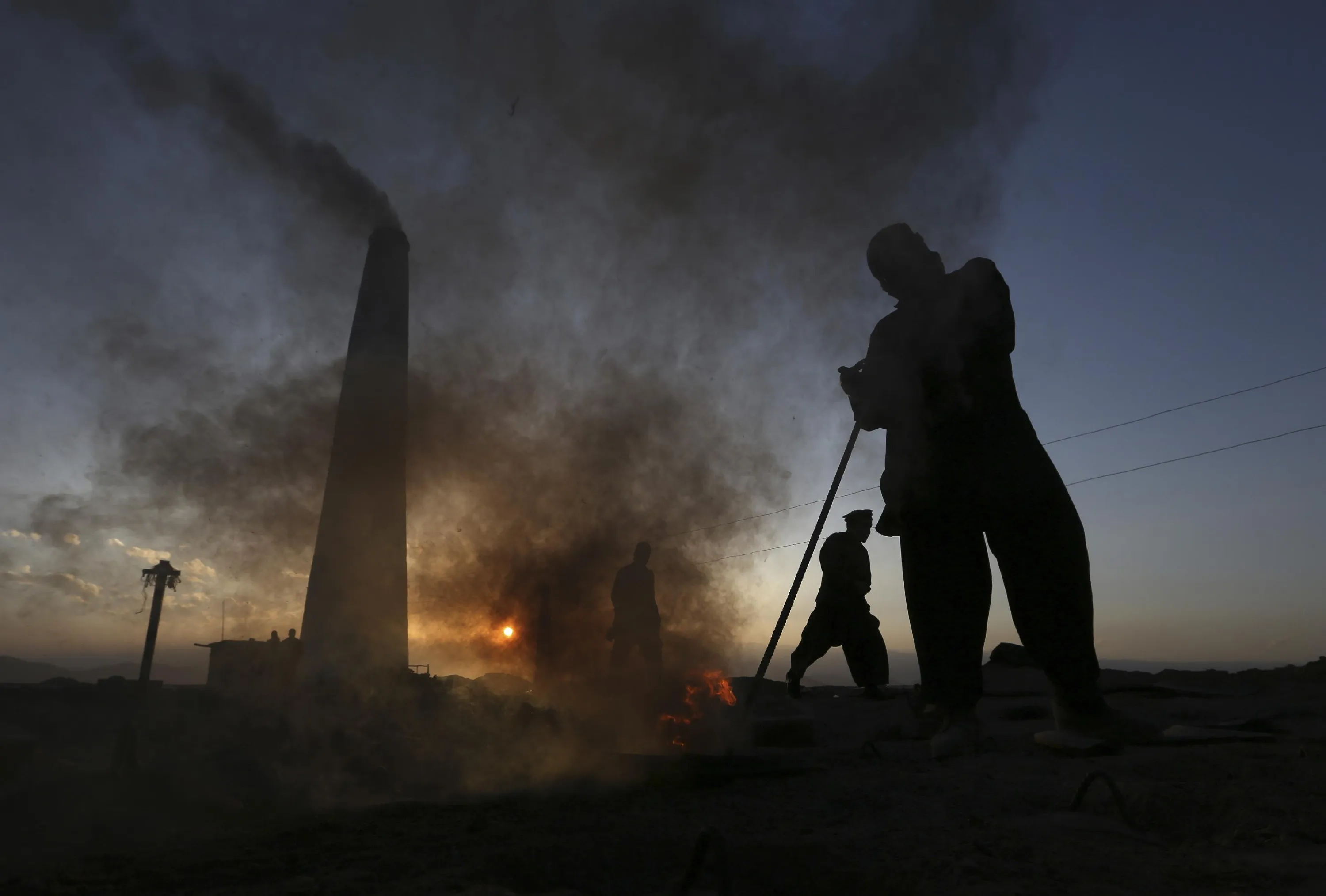 Afghan day laborers work at a brick factory as the sun sets, on the outskirts of Kabul, Afghanistan, Monday, April 20, 2015. (Photo by Rahmat Gul/AP Photo)
