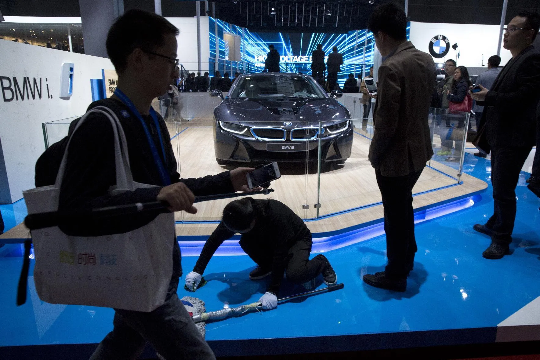 Attendees look at the latest car from BMW at the Shanghai Auto Show in Shanghai, Monday, April 20, 2015. (Photo by Ng Han Guan/AP Photo)