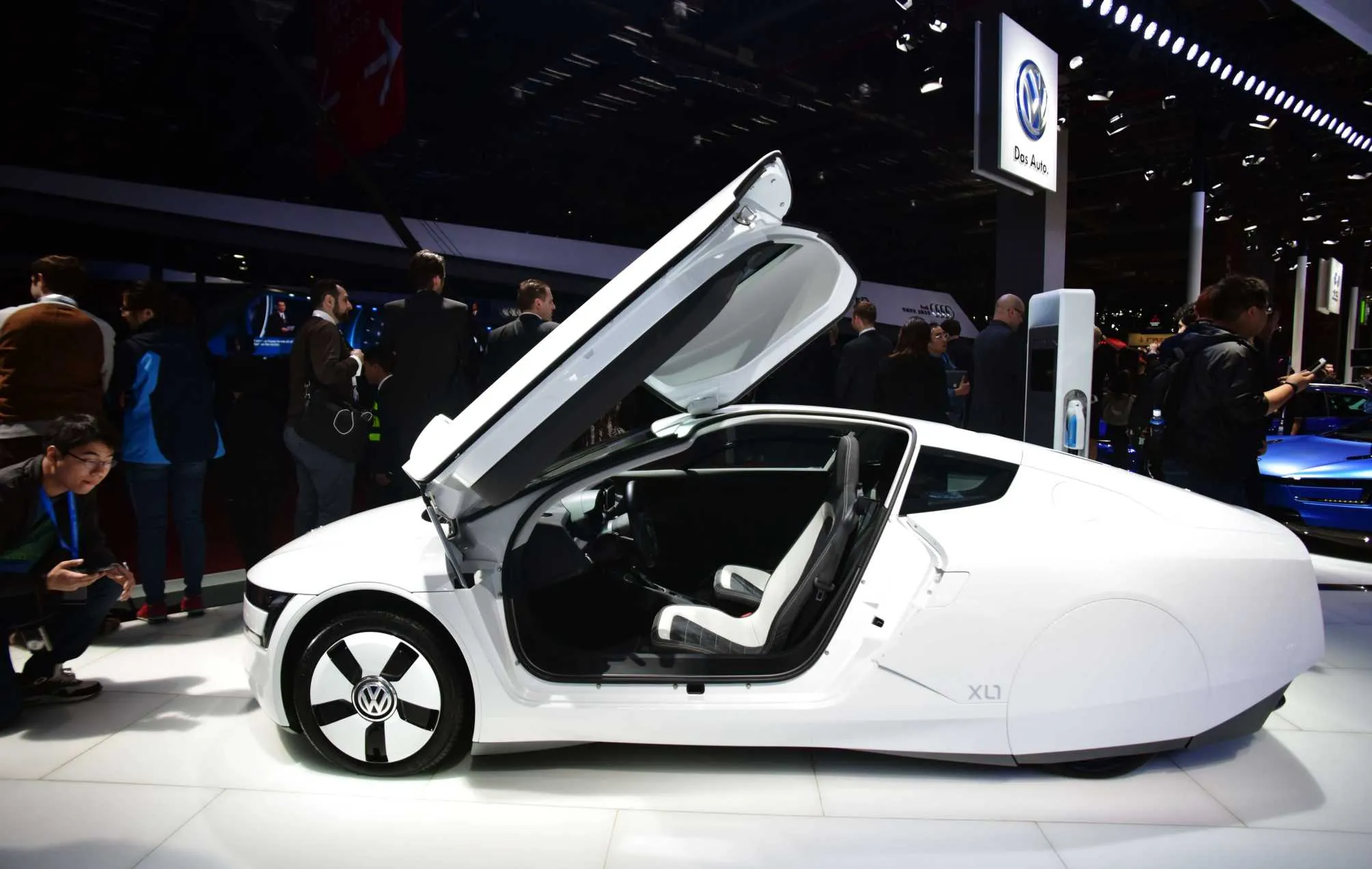A VW XL1 concept car is displayed at the 16th Shanghai International Automobile Industry Exhibition in Shanghai on April 20, 2015. (Photo by Johannes Eisele/Getty Images)