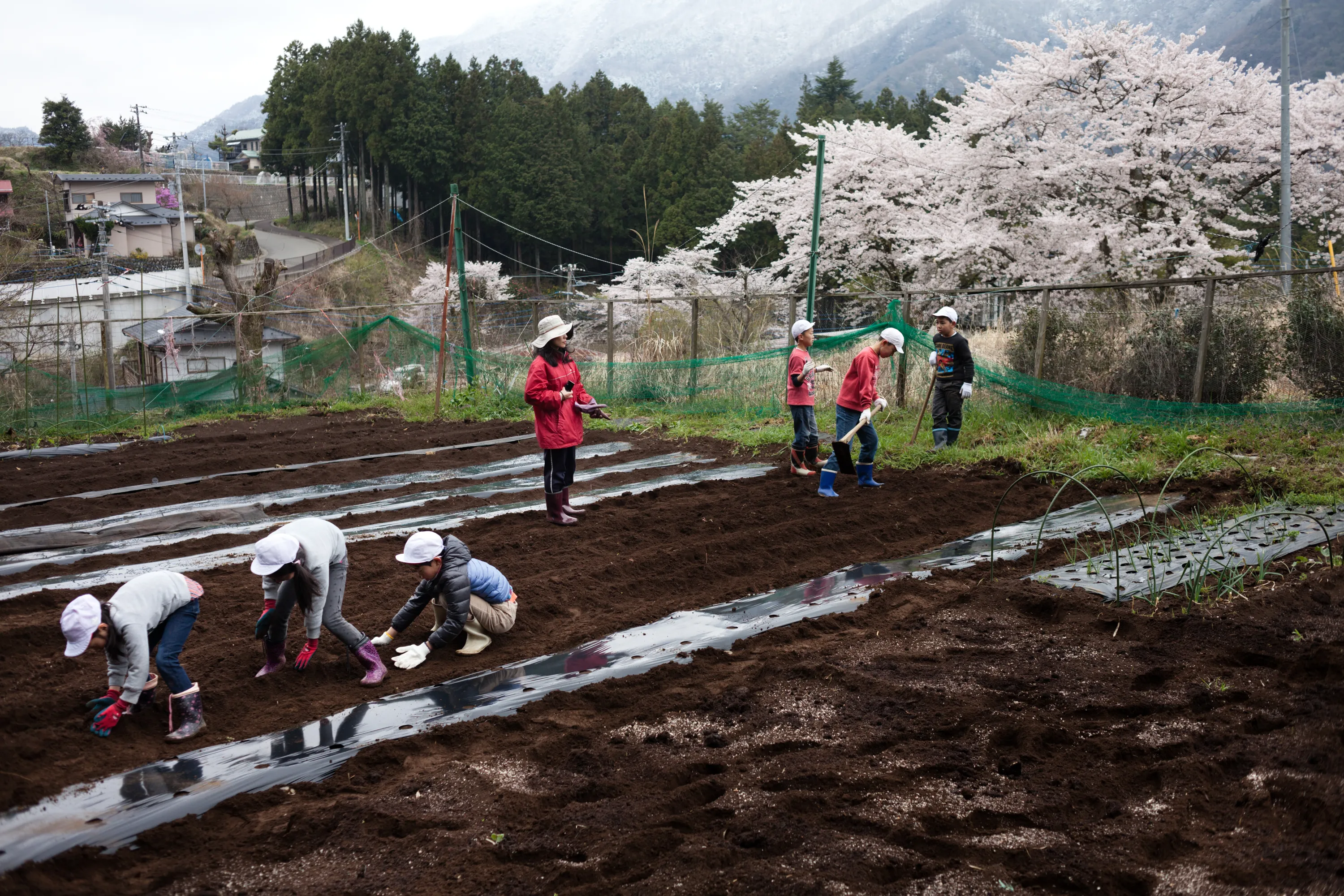 Six of Aone elementary school students at the potato field on April 9, 2015. (Photo by Ko Sasaki/The Washington Post)
