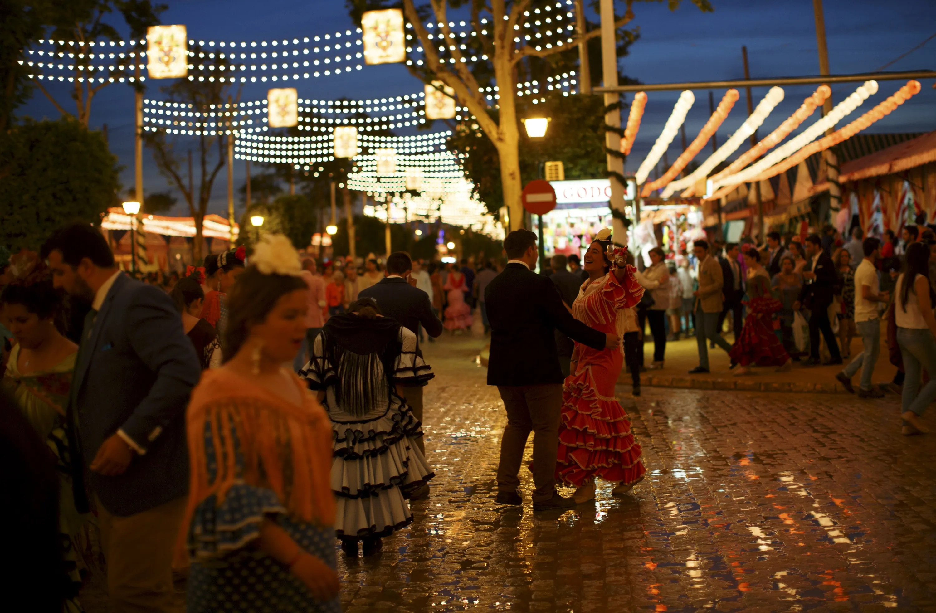 A couple embrace during the traditional Feria de Abril (April fair) in the Andalusian capital of Seville, southern Spain, April 22, 2015. (Photo by Marcelo del Pozo/Reuters)