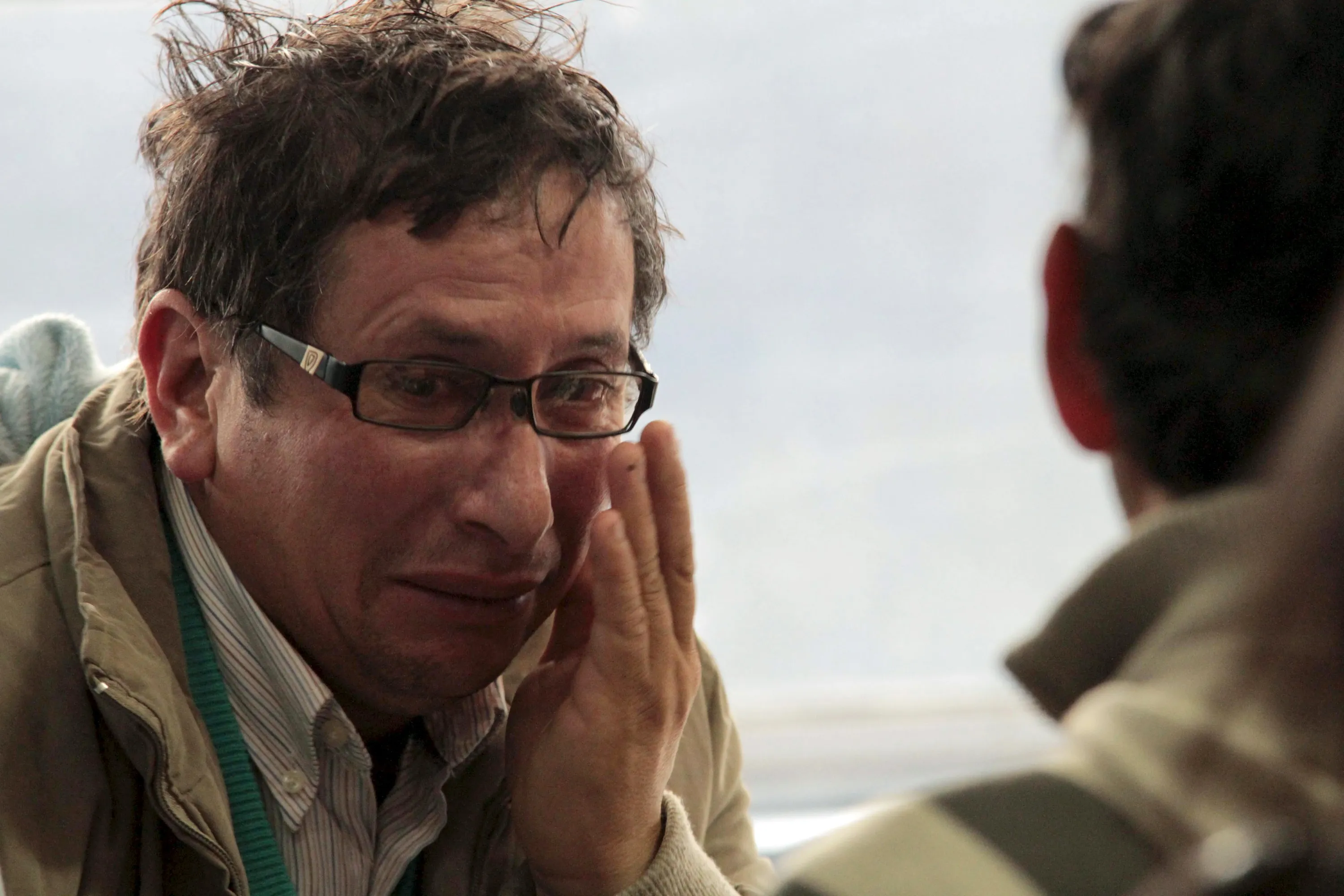 A man cries after his home collapsed under the weight of ash that had fallen on the roof, at a shelter at a school in Puerto Varas, April 23, 2015. (Photo by Carlos Gutierrez/Reuters)