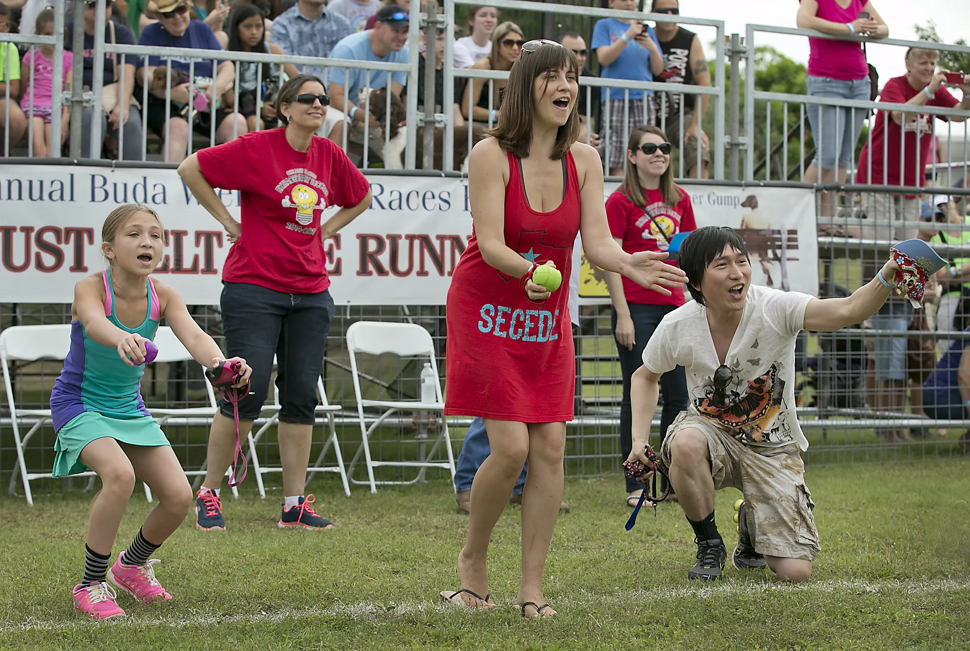 McKenzi Popper, 11, left, cheers on her dog Remy during his winning race to advance to the quarerfinals. The 18th Annual Buda County Fair and Weiner Dog Races was held at city park in Buda Sunday April 26, 2015 sponsored by the Lions Club. (Photo by Ralph Barrera/Austin American-Statesman)