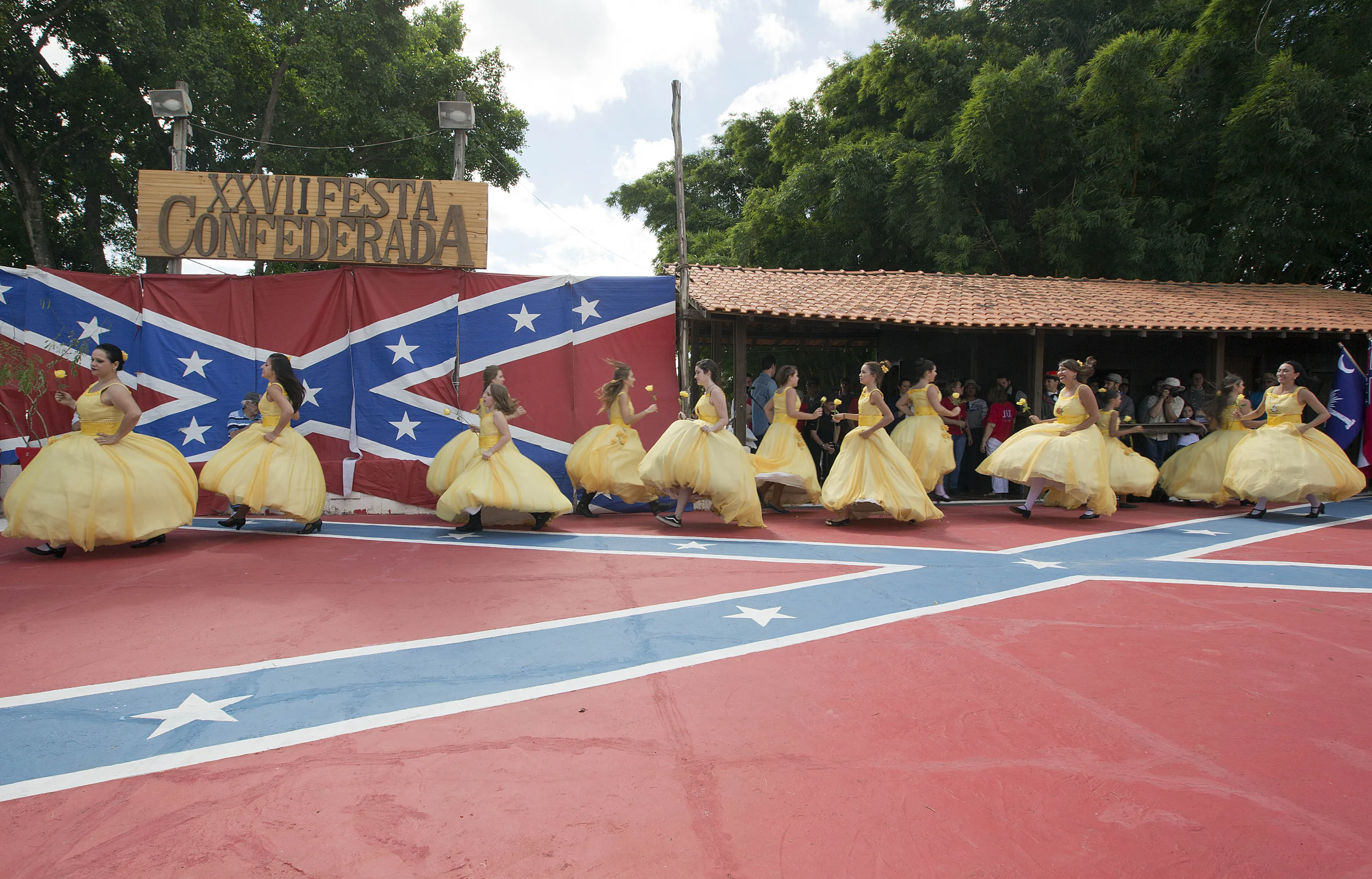 Descendants of American Southerners Wearing Confederate-era dresses dance during a party to celebrate the 150th anniversary of the end of the American Civil War in Santa Barbara d'Oeste, Brazil, Sunday, April 26, 2015. (Photo by Andre Penner/AP Photo)