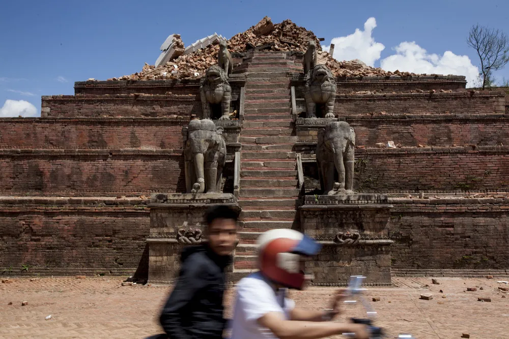 The rubble of a temple in Bhaktapur Durbar Square, Nepal, on April 27, 2015. (Photo by Brian Dawson/The Washington Post)