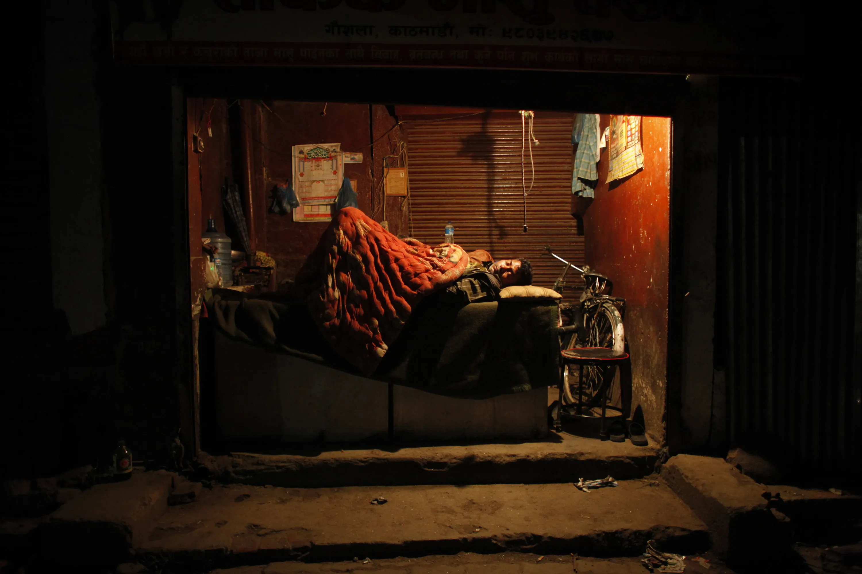 A man sleeps in his store with the shutters open in Kathmandu, Nepal, Tuesday, April 28, 2015. (Photo by Niranjan Shrestha/AP Photo)