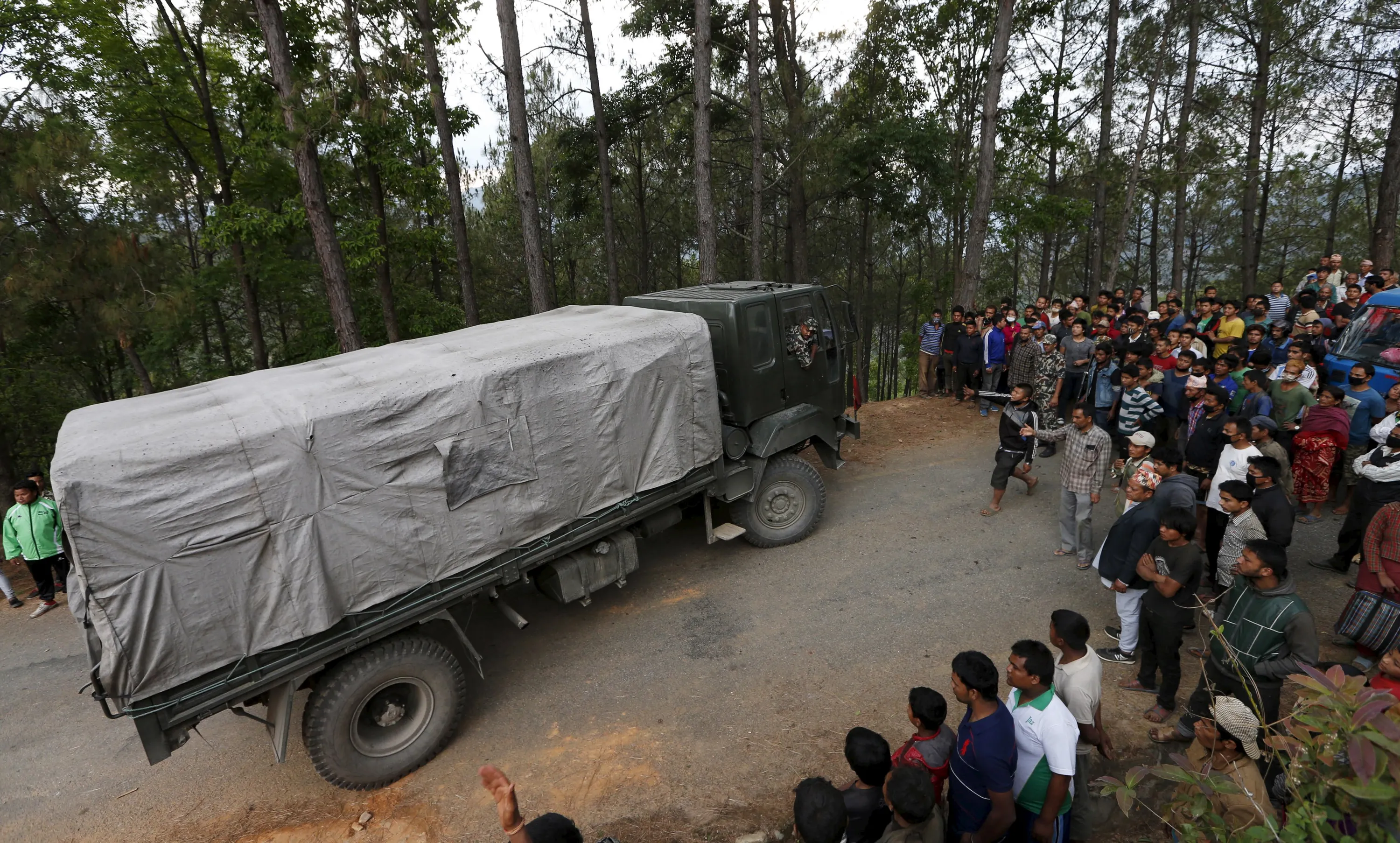 People force an army truck carrying relief supplies off the road, saying they have not received any government food aid five days after Saturday's earthquake, near Chautara, Nepal, April 29, 2015. (Photo by Olivia Harris/Reuters)