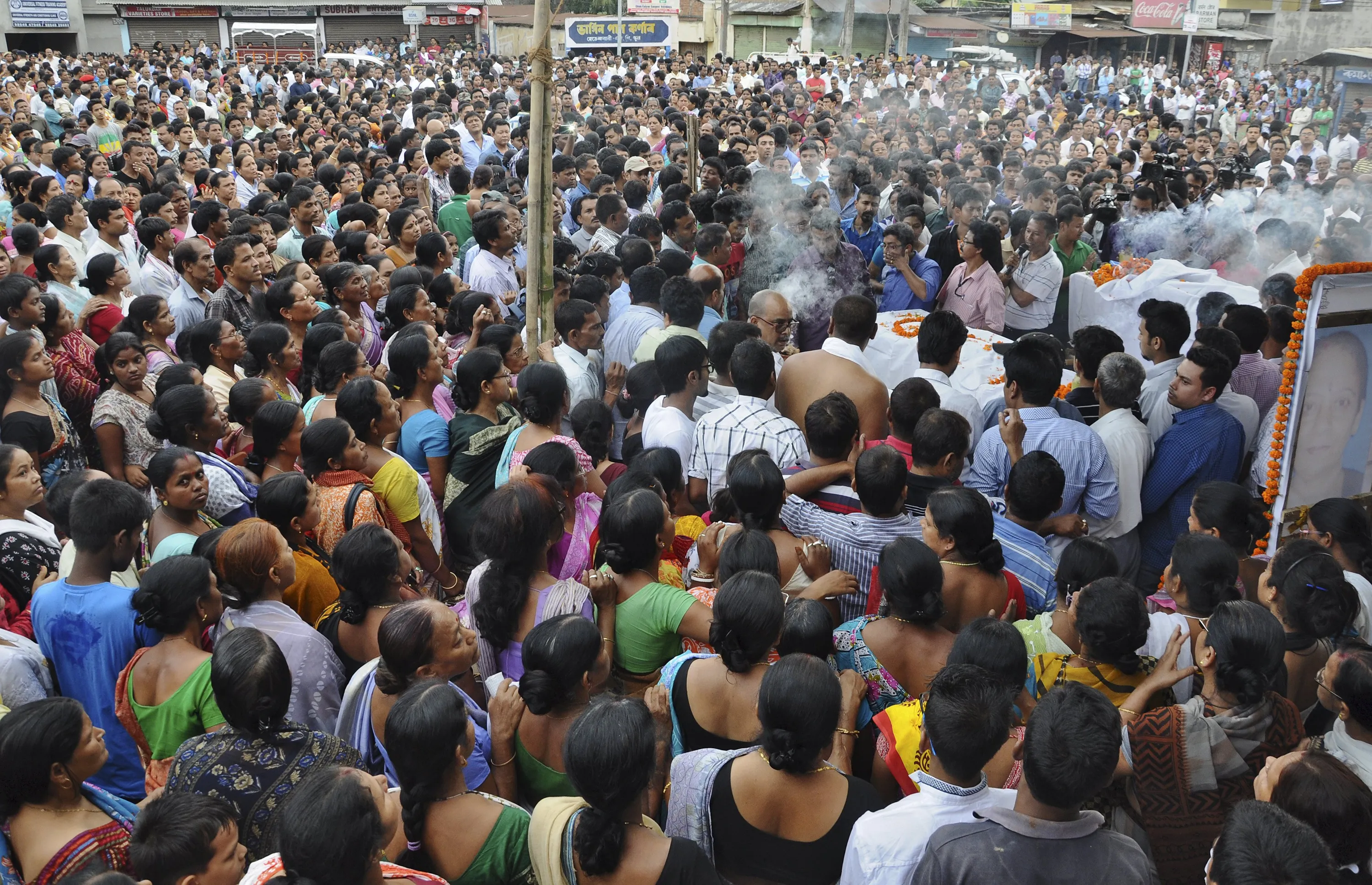 People stand amid coffins of the victims of Saturday's earthquake in Nepal, during the funeral in Guwahati, India, April 29, 2015. (Photo by Utpal Baruah/Reuters)