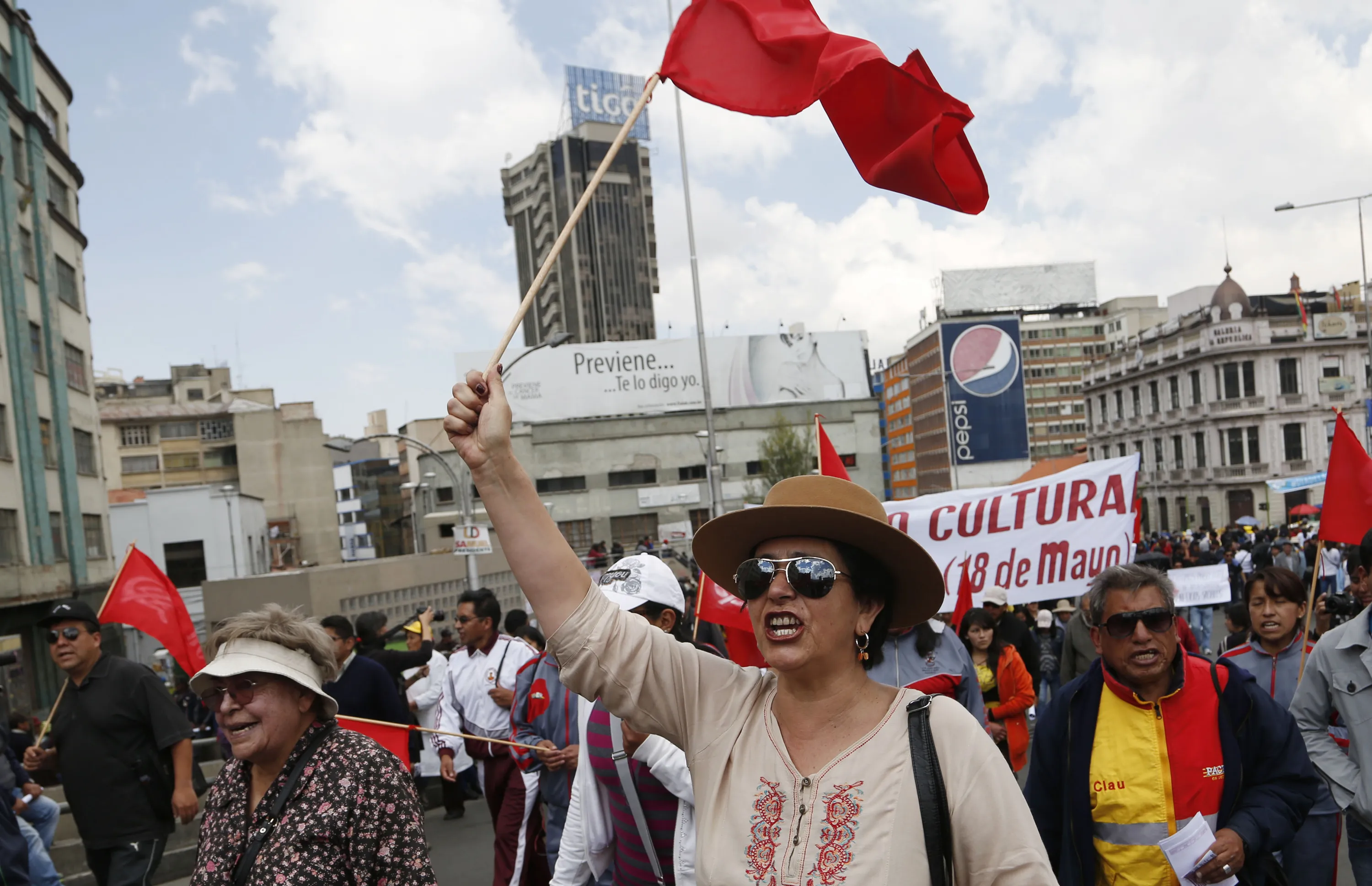 Demonstrators shout slogans as they take part in a May Day march, in La Paz, Bolivia, Friday, May 1, 2015. (Photo by Juan Karita/AP Photo)