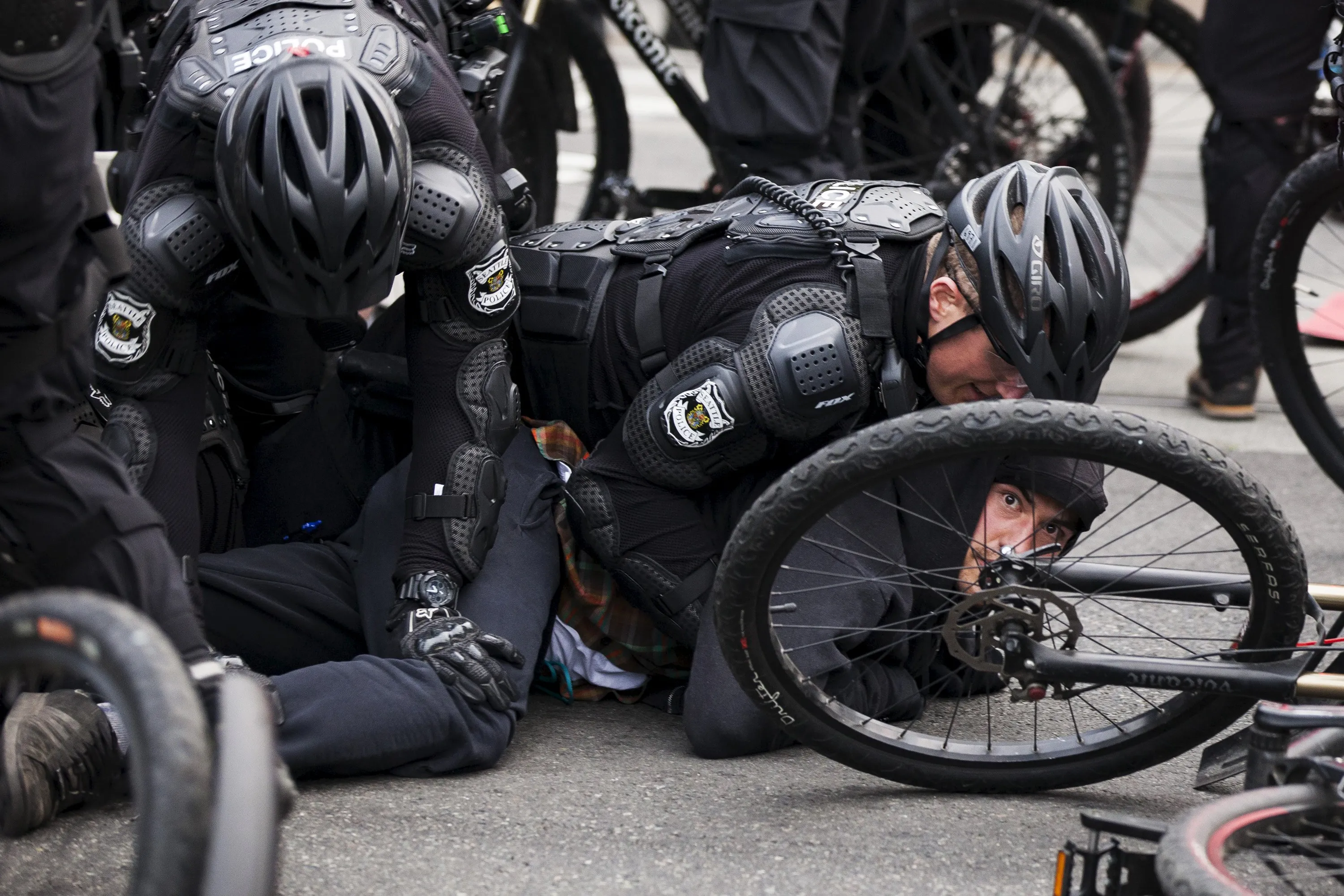 Police detain a demonstrator during an anti-capitalist protest in Seattle, Washington May 1, 2015. (Photo by David Ryder/Reuters)