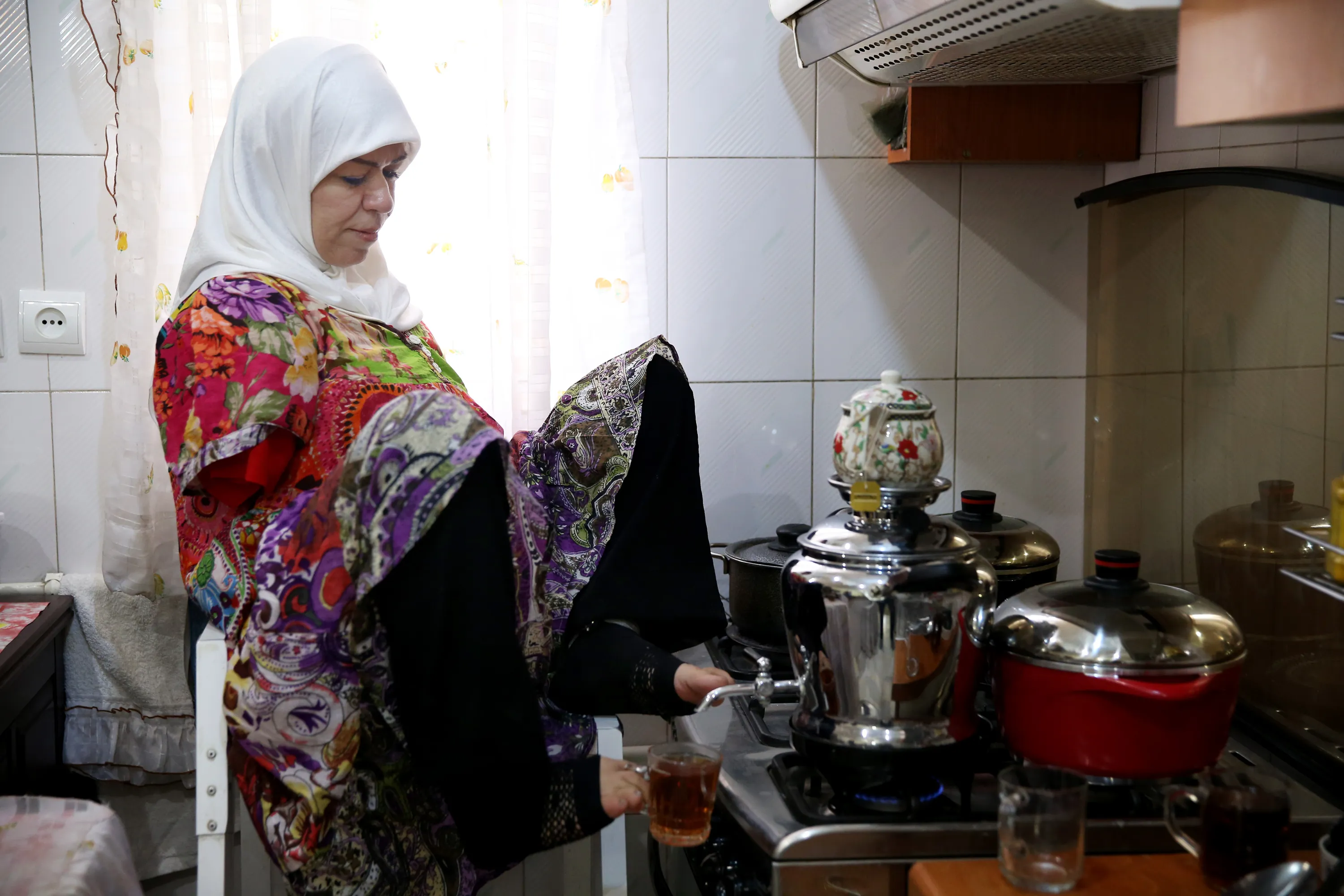 In this picture taken on Thursday, January 28, 2015, Zohreh Etezadossaltaneh uses her feet to pour tea at her home, in Tehran, Iran. Etezadossaltaneh was born without arms. (Photo by Ebrahim Noroozi/AP Photo)