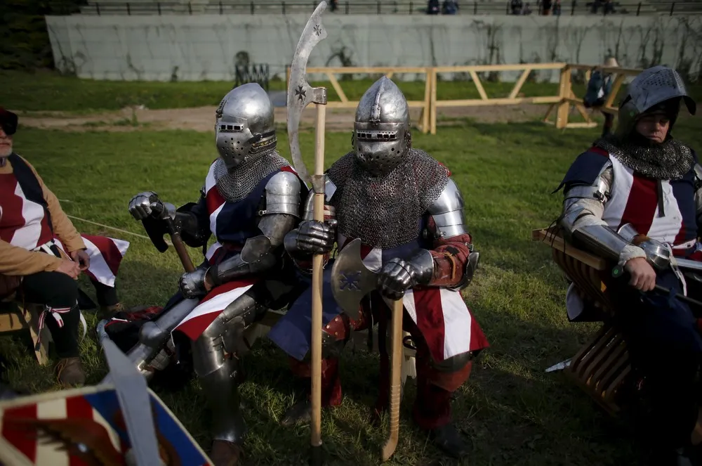 Members of U.S. team wait for the fights during break at the Medieval Combat World Championship at Malbork Castle, northern Poland, April 30, 2015. (Photo by Kacper Pempel/Reuters)