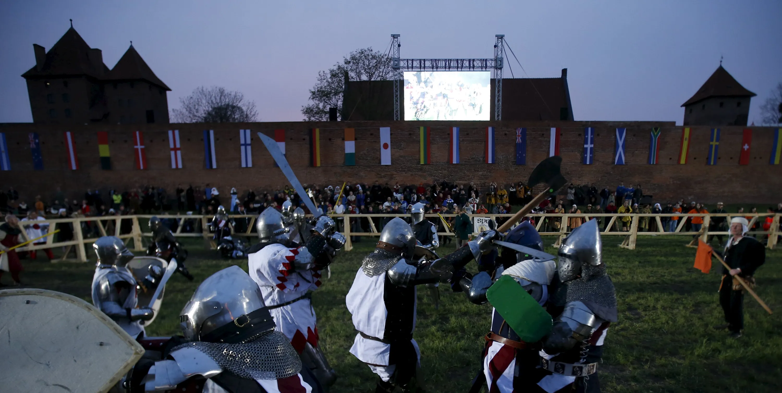 Fighters compete in the “10 vs 10” competition at the Medieval Combat World Championship at Malbork Castle, northern Poland, April 30, 2015. (Photo by Kacper Pempel/Reuters)