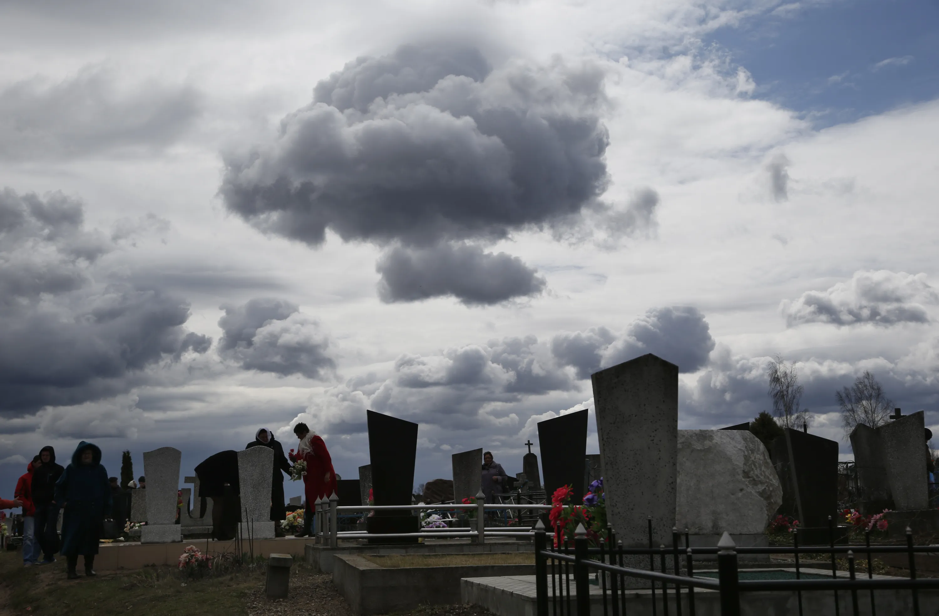Belarusians stand near the graves of their relatives, during an Orthodox Christian tradition, in a cemetery in the town of Novogrudok, 150 kms, 93 miles, west of Minsk, Belarus, Tuesday, April 21, 2015. (Photo by Sergei Grits/AP Photo)