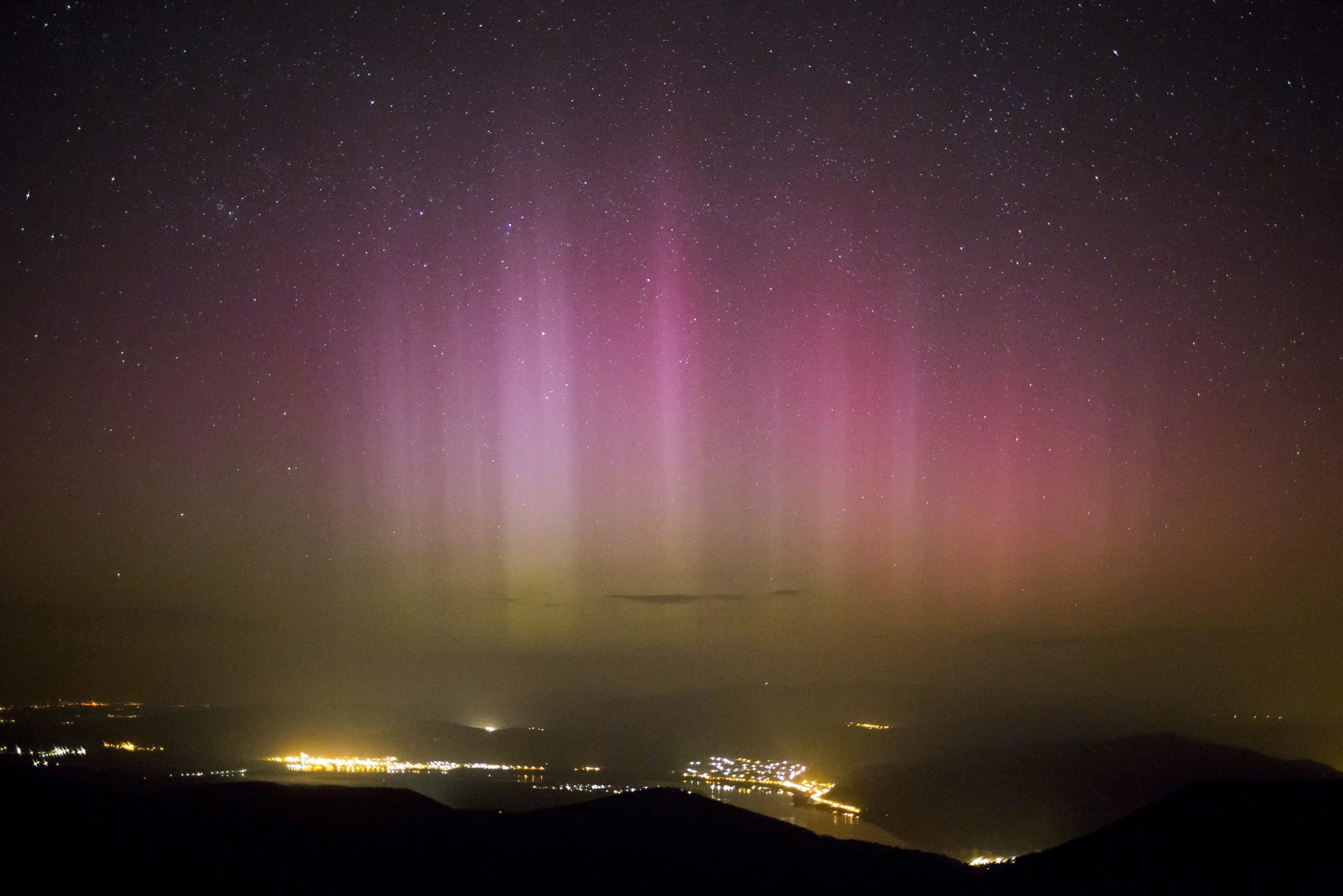 The Northern Lights (Aurora borealis) are seen on the sky above Pilisszentkereszt, 26 kms north of Budapest, Hungary, 18 March 2015. An aurora is a phenomenon where natural light, caused by charged particles, is displayed in the skies mainly over the high latitude Arctic and Antarctic regions. (Photo by Balazs Mohai/EPA)
